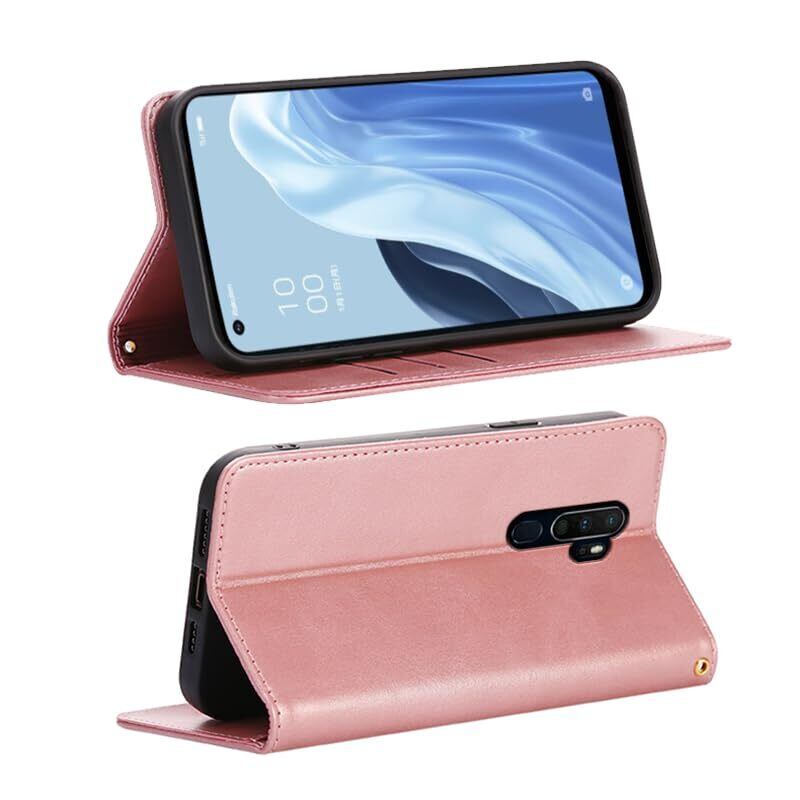 OPPO A5 2020/A9 2020/A11X ケース 手帳型 カバー PUレザー カード収納 財布型 耐衝撃 ケース マグネット スタンド機能付き 5色 (OPPO A5 2020/A9 2020/A11X ケース 手帳型) (ライトローズゴールド) | hananoki