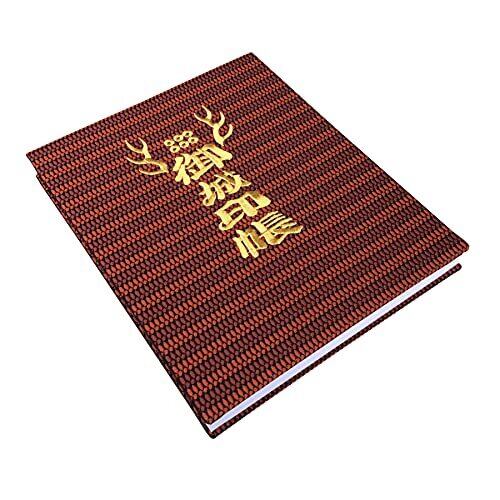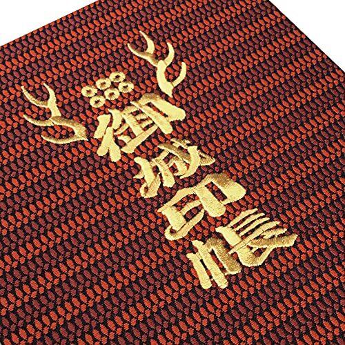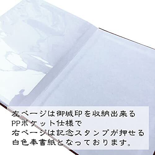 ・甲冑柄の織物に、武将の兜デザインと「御城印帳」を刺繍した豪華な表紙です。 ・左ページにご城印(ポケット)、右ページに記念スタンプ(白紙)、表/裏両面同じ仕様の全60ページ・30ポケットの蛇腹式御城印帳です。 ・MサイズとLサイズがございます。 ・表紙の兜デザイン及び「御城印帳」文字は刺繍で仕上げていますので立体感があります。 ・本文(中身)は当店が御城印帳のために作り上げた、片面(左ページ)PPポケット仕様です。 ・白い奉書紙を使った本文は、右ページが白紙で記念スタンプを押すスペースになっています。