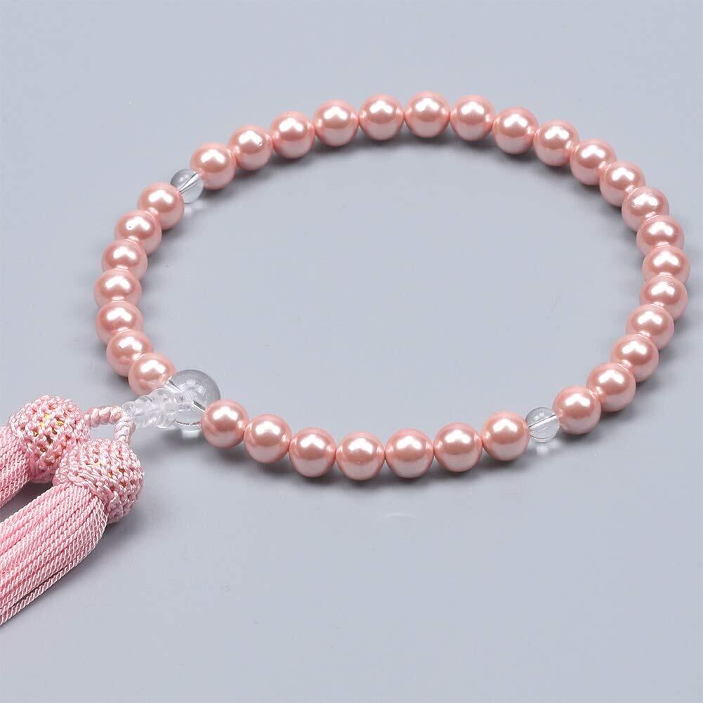 LEOBEE 貝パール 女性用数珠 マグネット式数珠袋付き 念珠 じゅず 手作り念珠 数珠ブレスレット 葬式 葬儀 墓参り 法事 念誦 全ての宗派で使用頂け (ピンク貝パール)