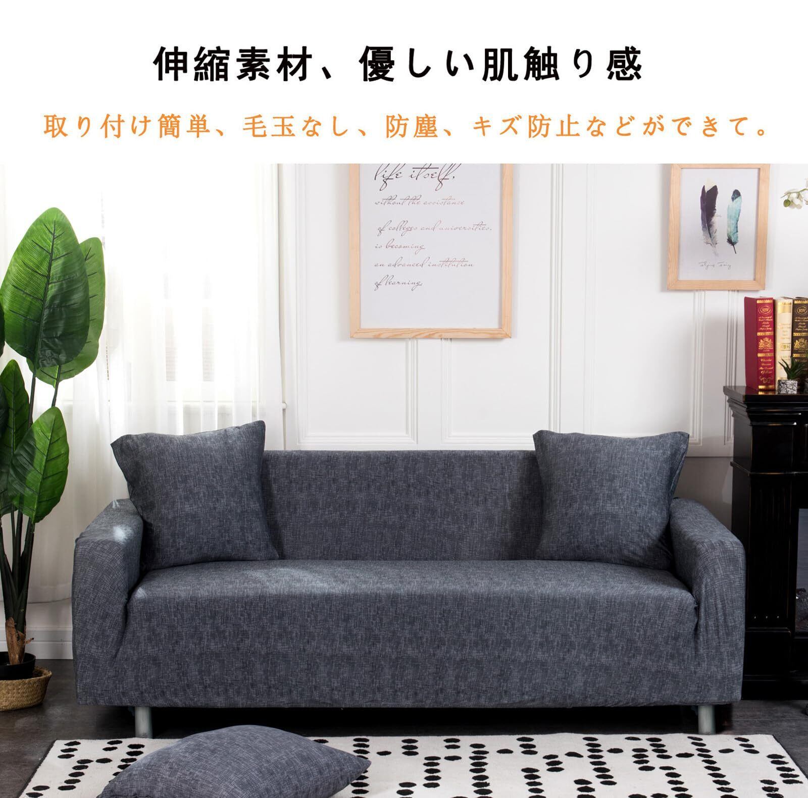 【素材】高品質ポリエステル+スパンデックス、伸縮素材、優しい肌触り感。サイズ:2人掛け145-185cm。ご注意: カバーはストライプのような柄があります。無地ではありません。ソファーカバーの細かい部分写真ご覧ください。