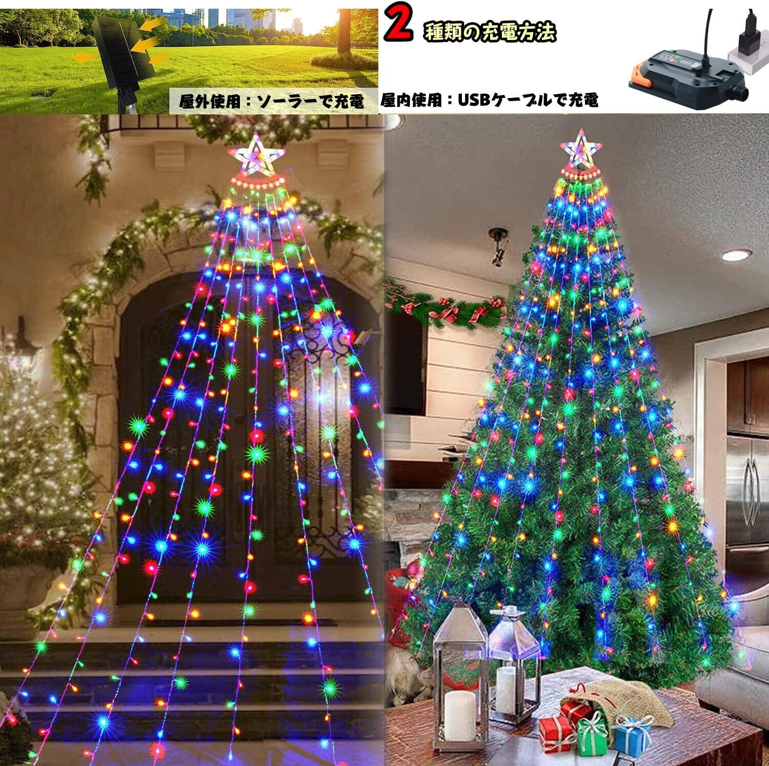 V-Dank ソーラー クリスマス イルミネーション ライト LED 屋外 防水 350球 USB充電可 ドレープライト クリスマス イルミネーション 星 13モード 遠隔リモコン クリスマスツリーライト タイマー 記憶 電飾 飾り ライト ストリップライト 自動点灯 消灯 パーティー 新年 祝日 結婚式 庭対応(カラフル)