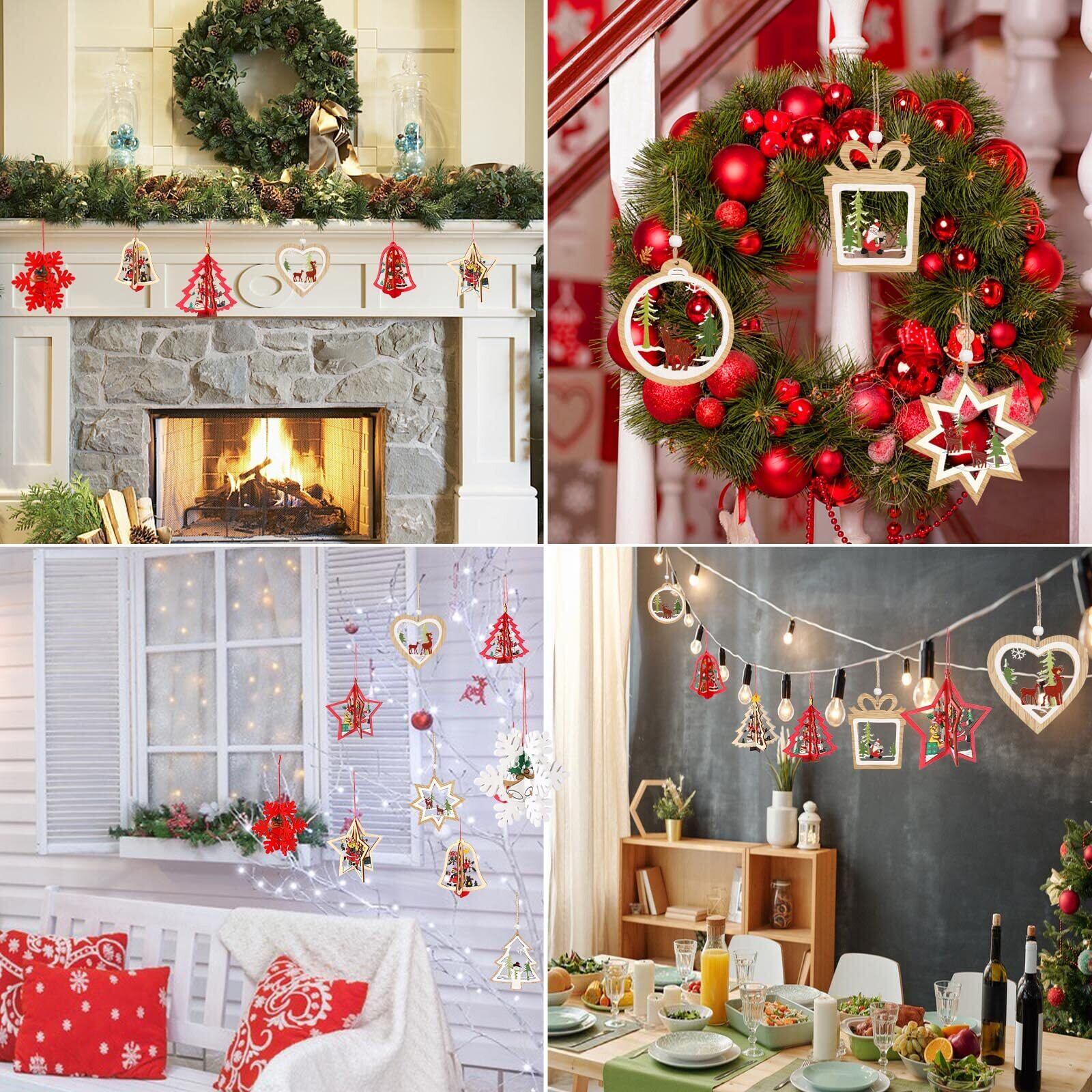 【デザイン】これらのクリスマスツリー オーナメントは全て透かし彫りの技法を採用して、芸術品のように見えます。一方で、セットの中に8個の木製オーナメントは立体の形にデザインされるため、クリスマスツリーや天井などに吊り下げて、どんな角度から見ても問題ありません。