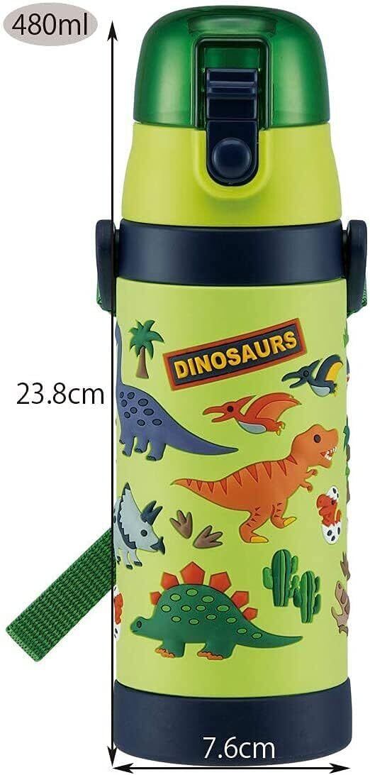 スケーター(Skater) 子供用 ステンレス 水筒 直飲み 480ml ディノザウルス 子供に優しい軽量タイプ 男の子 保冷専用 恐竜 3D立体プリントwaterbottle スポーツボトル かわいい キッズ 子供 こども 水瓶 SDPV5-A
