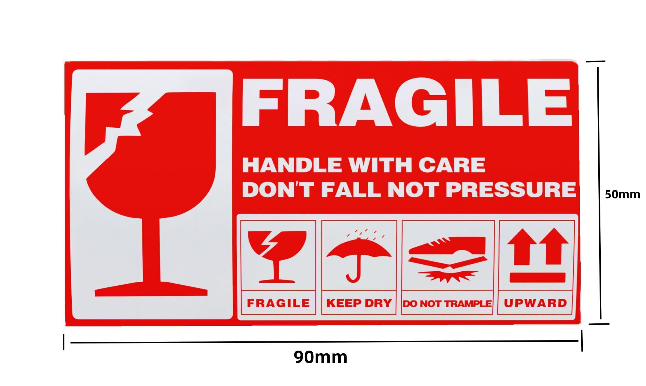 90 x 50 mm fragile 割れ物注意 シール、200枚/ロール。取り扱いに注意しなければならないすべての荷物やインテリアなどに使用でき、高価な商品や荷物の破損を防ぐことができます。小物やメールに貼るときにもぴったりです。国内でも海外でも使えます。簡単にはがして、物品に貼り付けることができて、脱落しにくい。広く使われている割れ物注意シールです