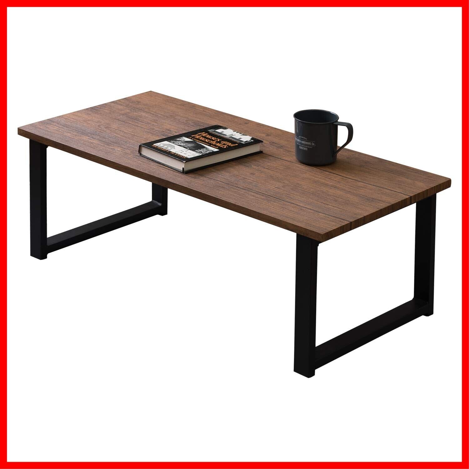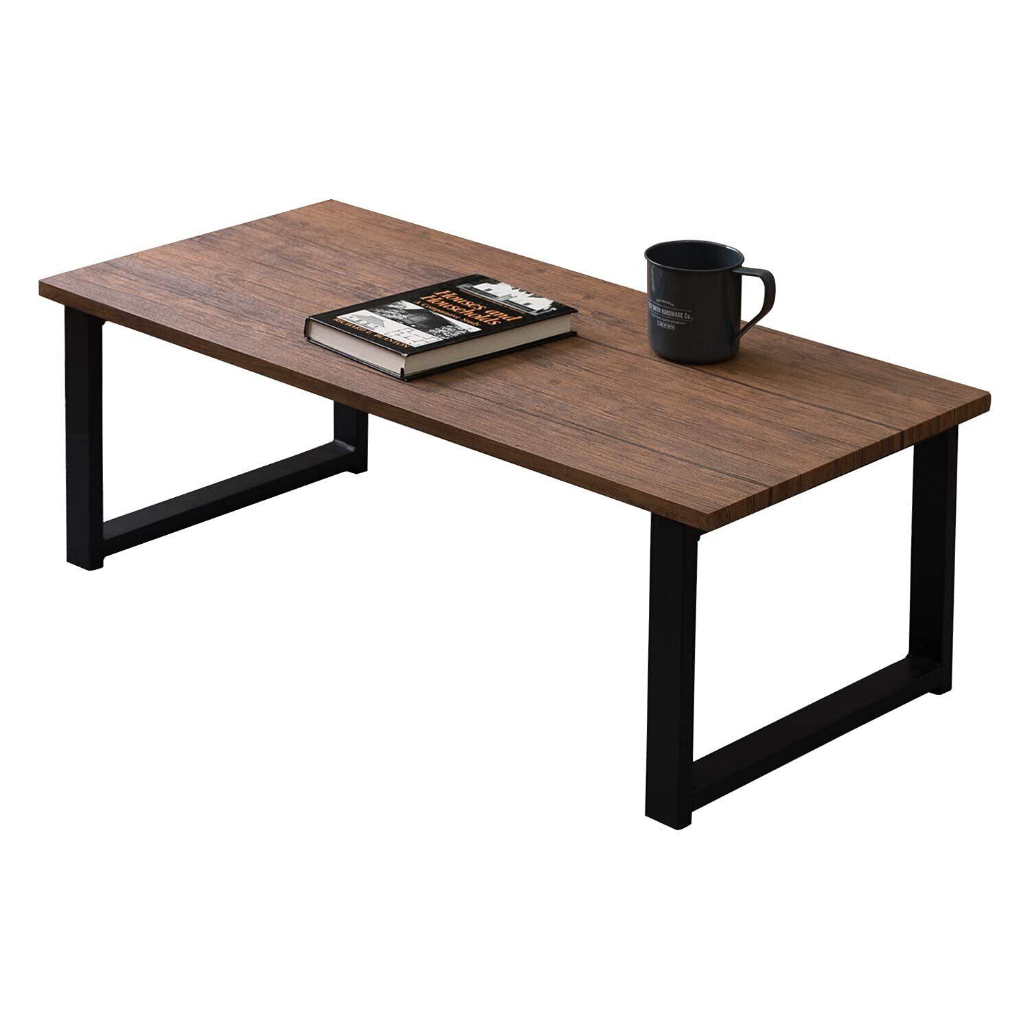 萩原(Hagihara) ローテーブル センターテーブル テーブル 机 【木目調天板×スチール脚】 インダストリアル リビング ソファテーブル 幅90 ブラウン LT-4394BR | hananoki