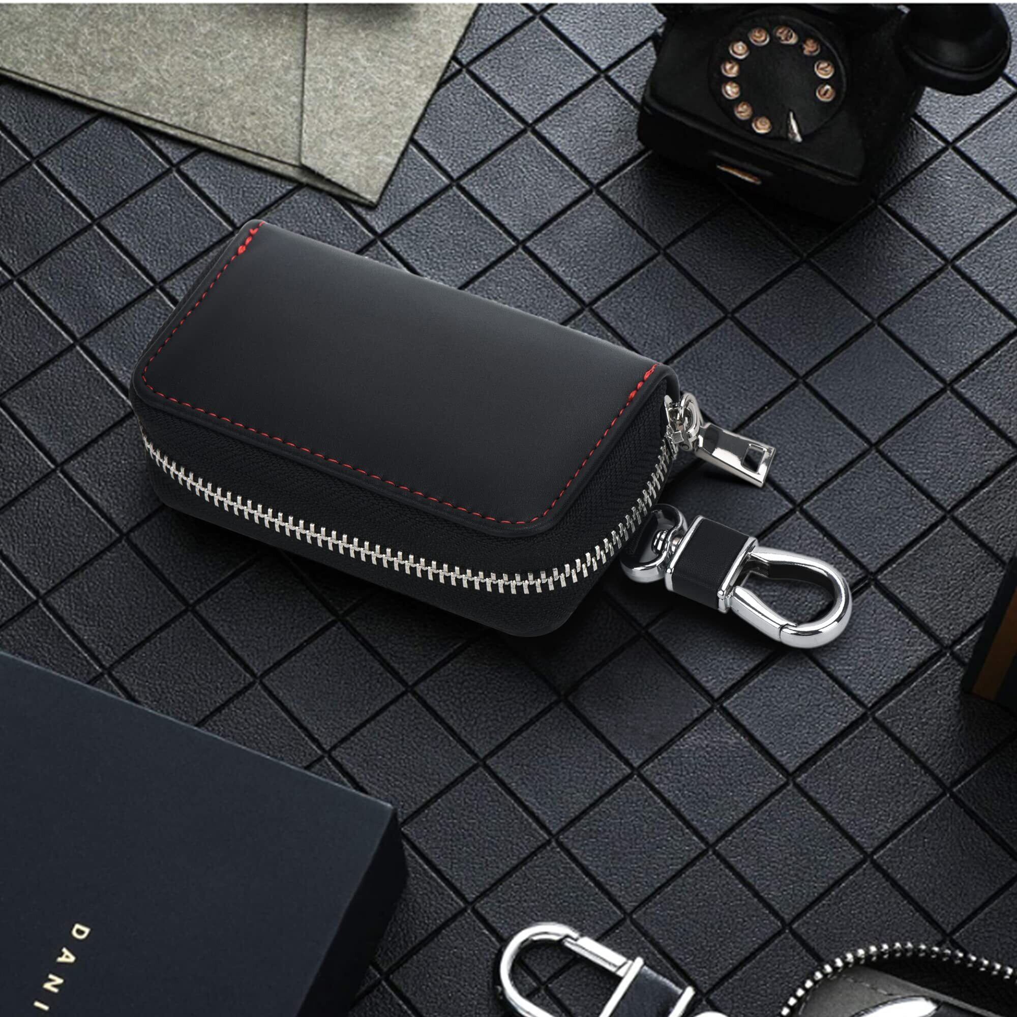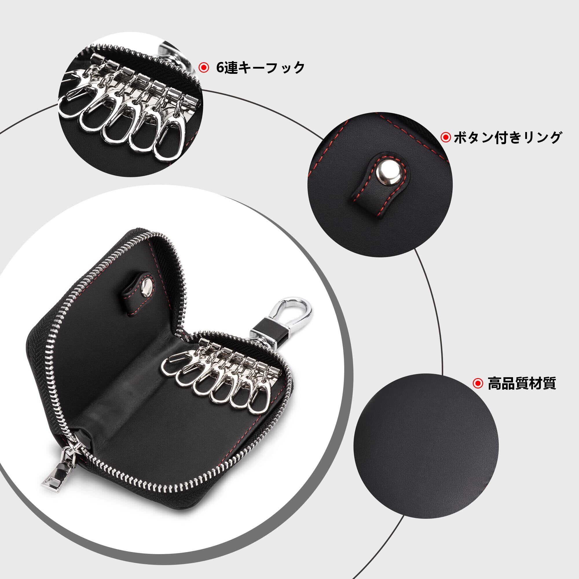 [Migeec] キーケース スマートキーケース 車キーケース メンズ レディース キーホルダー カードキーケース カラナビ付き コンパクト スリム プレゼントに 六連 4連可 多機能 男女兼用 (六連, ブラック)