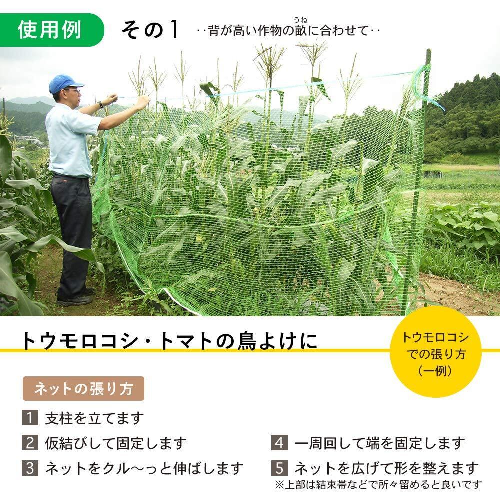 2.2m幅を高さ方向に使用してトマトやトウモロコシの鳥よけにご使用いただけます。