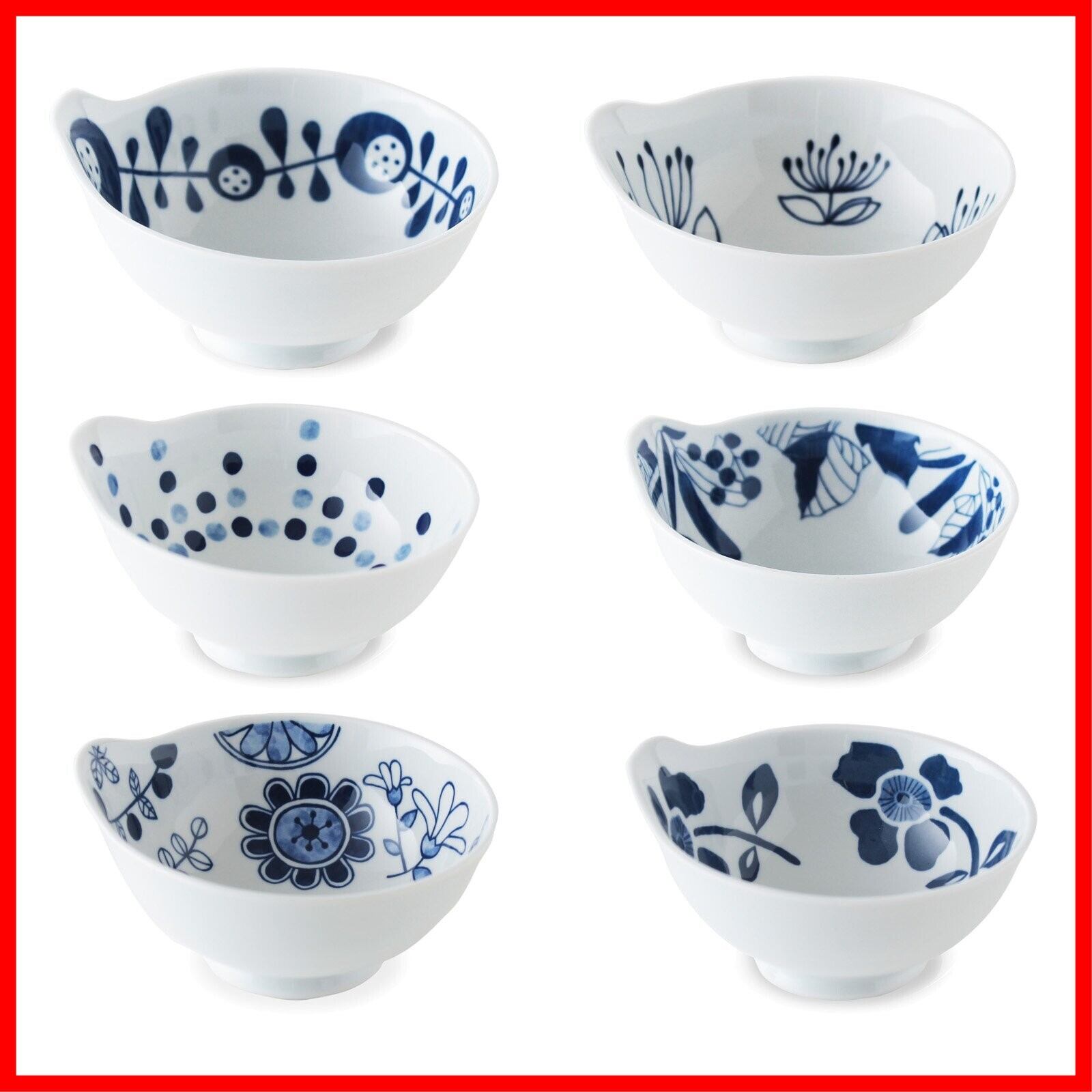 波佐見焼 CtoC JAPAN 少し大きめの 持ち手つき 小鉢 6柄組 W14.5×D13×H7(cm) 440(cc)