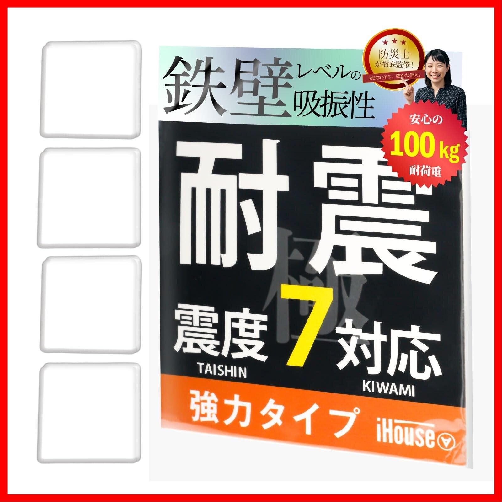 【耐震力No1】震度7対応で東日本大震災クラスの大地震にも対応。4枚以上の設置で耐荷重100kgでトップクラスの耐震力を持つことが可能です。耐震力に重視をして安価なゴム素材を使わずに高品質で厚さ5mm の極厚耐震ジェルで地震から守ります。