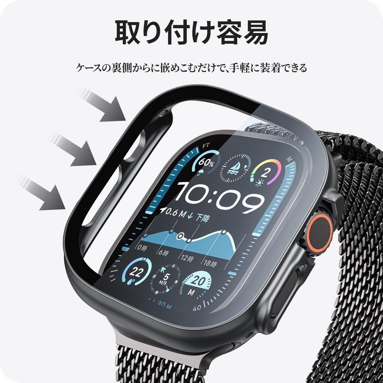 NIMASO Apple Watch Ultra 2/ Ultra 49mm 用 ケース 対応 アップルウォッチ 49mm 対応 apple watch Ultra 2/ Ultra ケース 保護カバー ガラスフィルム 一体型 PC素材全面保護 ブラック(氷星シリーズ)NWC24H1518 | hananoki