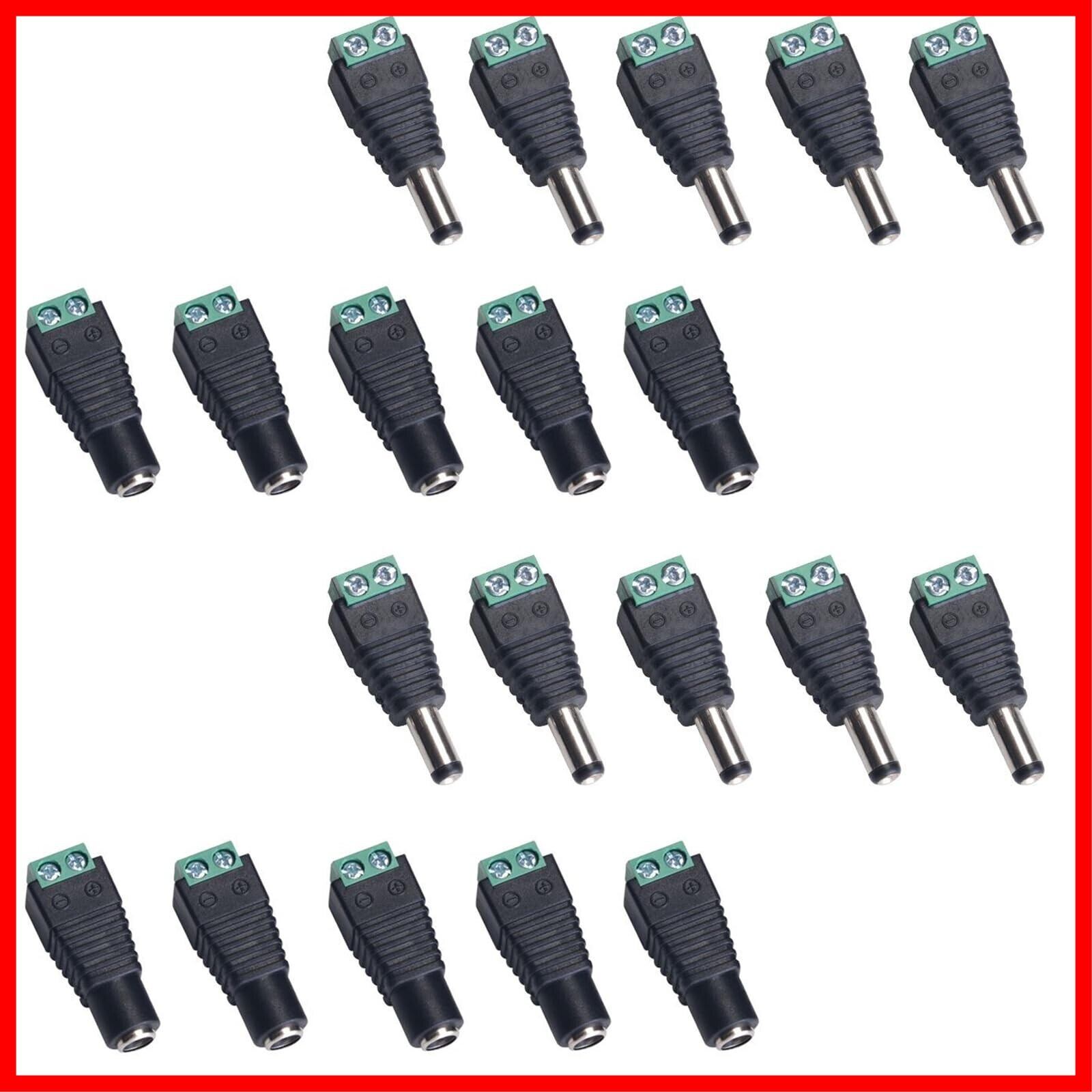 サムコス 5.5mm x 2.1mm DC 12V電源アダプタクイックコネクタ ネジ端子アダプタ CCTVカメラとLEDテープライト用DCジャック変換プラグ 20個セット (10メス + 10オス) | hananoki