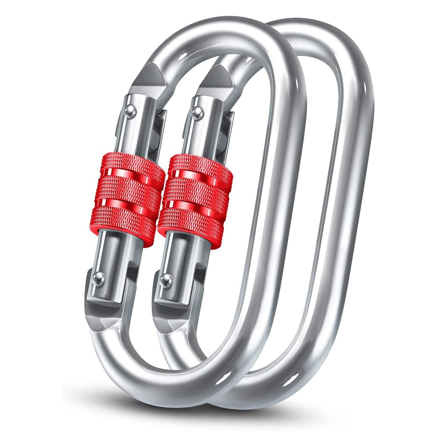 CAMPSTORS登山用 カラビナ 25KN クライミングカラビナ ハードスチール アルミカラビナ レスキュー 登山用具 操作簡単 超軽量 2セット