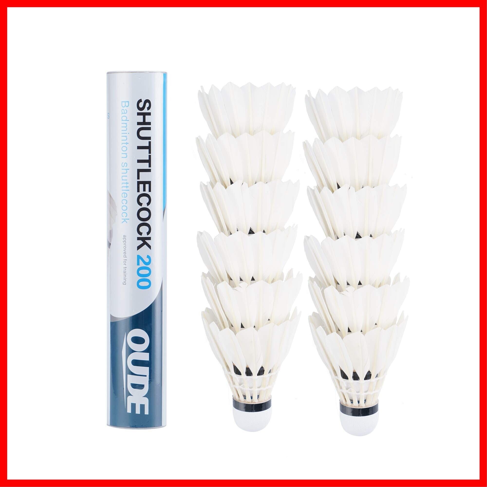 OUDEバドミントン、モデル200と12個のガチョウの羽羽根安定した丈夫なスポーツトレーニングのバドミントンボール、屋内屋外ゲーム用、ホワイト