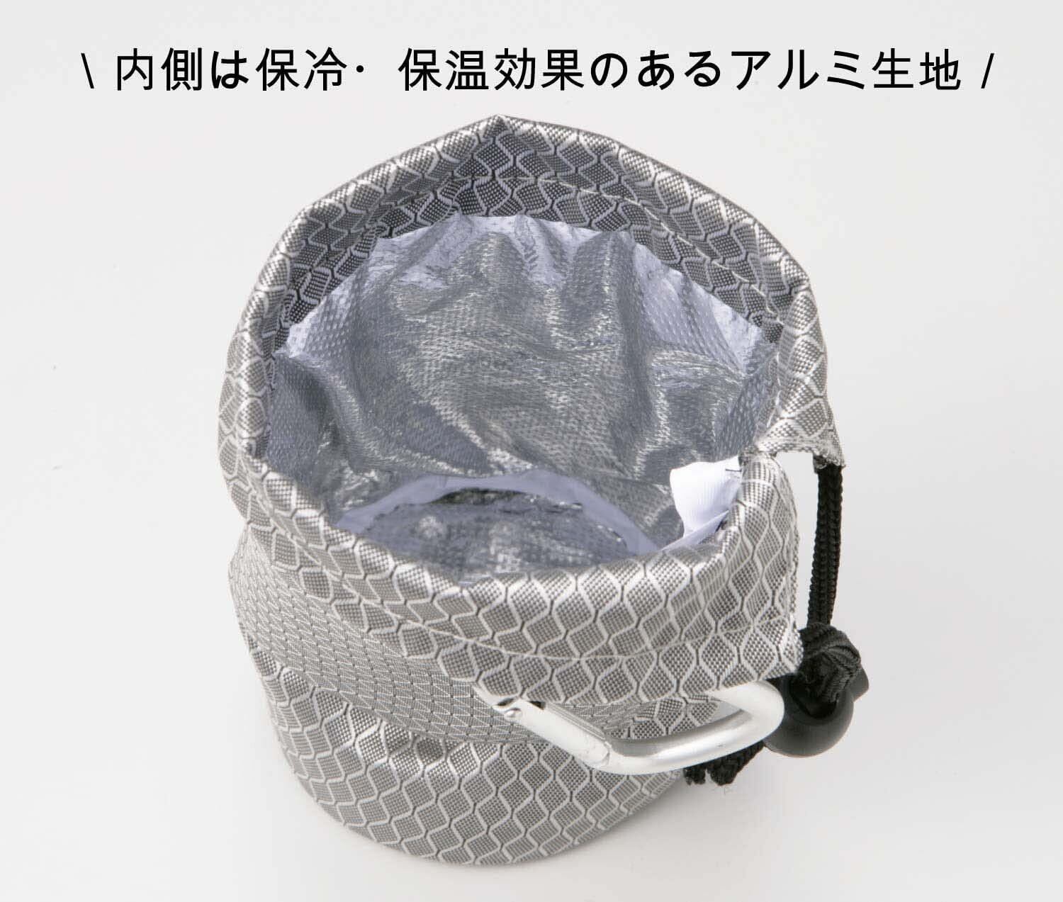 上部は巾着状で、閉めておけばボトルが飛び出しにくく、保冷・保温効果もアップ