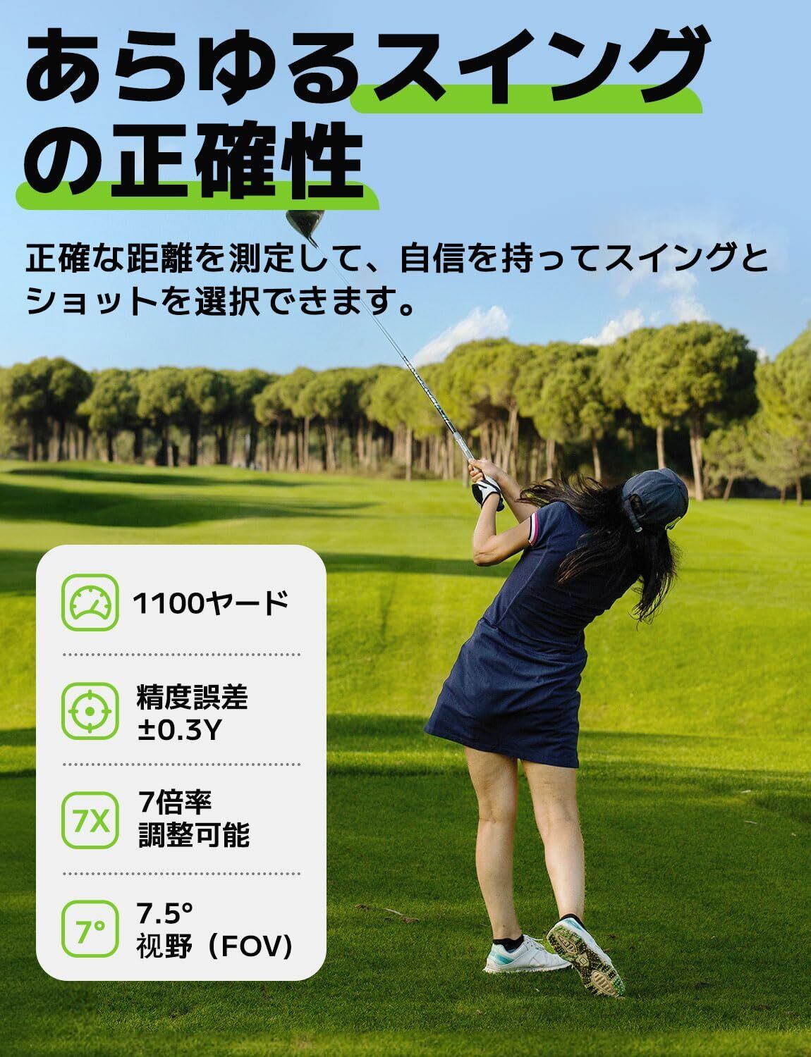 Flysocks OLED ゴルフレーザー距離計 PF120 距離測定器 mini 7倍率広視野角1100yd 90%高透過率 ゴルフ用 最速0.05S測定 IP65 防塵防水 小型 軽量 Type-C充電式 自動オフ機能 スロープモード ピンロックモード 高低差測定ON/OFF競技対応