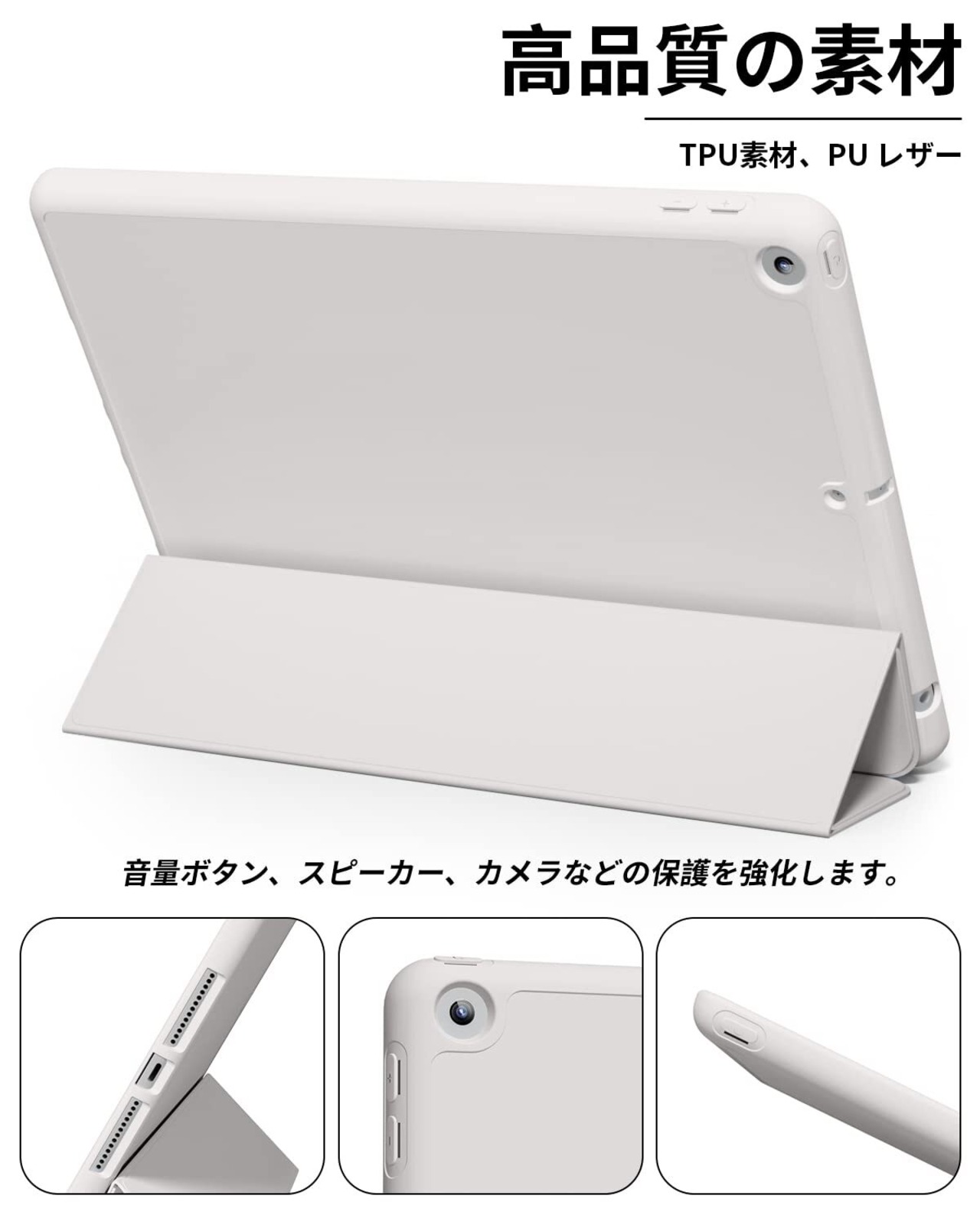 Aoub iPad 10.2 インチ 第9/8/7世代 (2021/2020/2019年) ケース オートスリープ/ウェイク機能対応 Apple Pencilペン収納・ホルダー付 スマートカバー ソフト TPU 薄型 軽量 耐衝撃 三つ折りスタンド グレー | hananoki