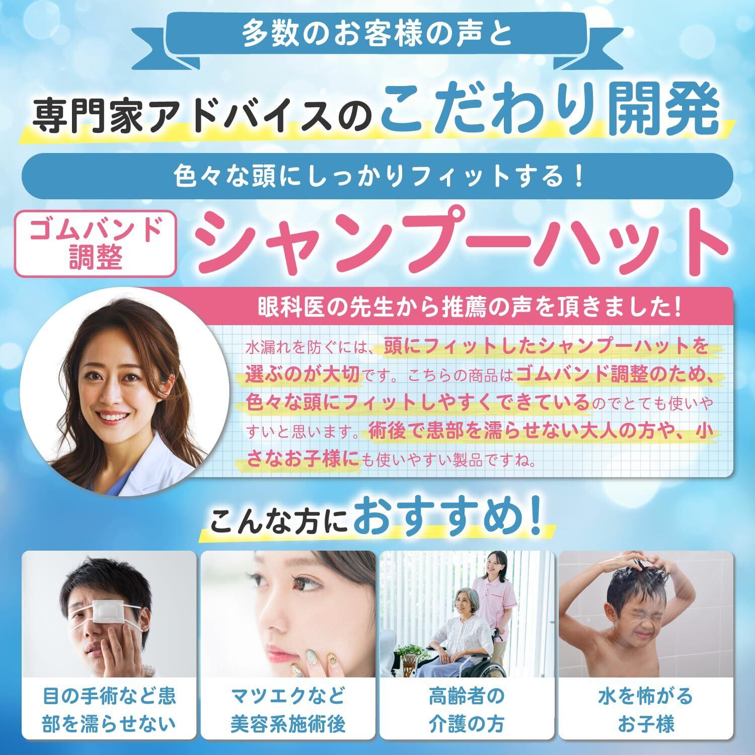 【ゴムバンド調整で頭にピッタリフィット】水泳帽に使われる伸縮性の高いオリジナルのゴムバンドによるサイズ調整で頭にピッタリフィットするシャンプーハットです。小さい頭から大きい頭までピッタリフィットするので水が漏れにくく、顔を濡らせない方、介護の方、水が苦手なお子様におすすめです。