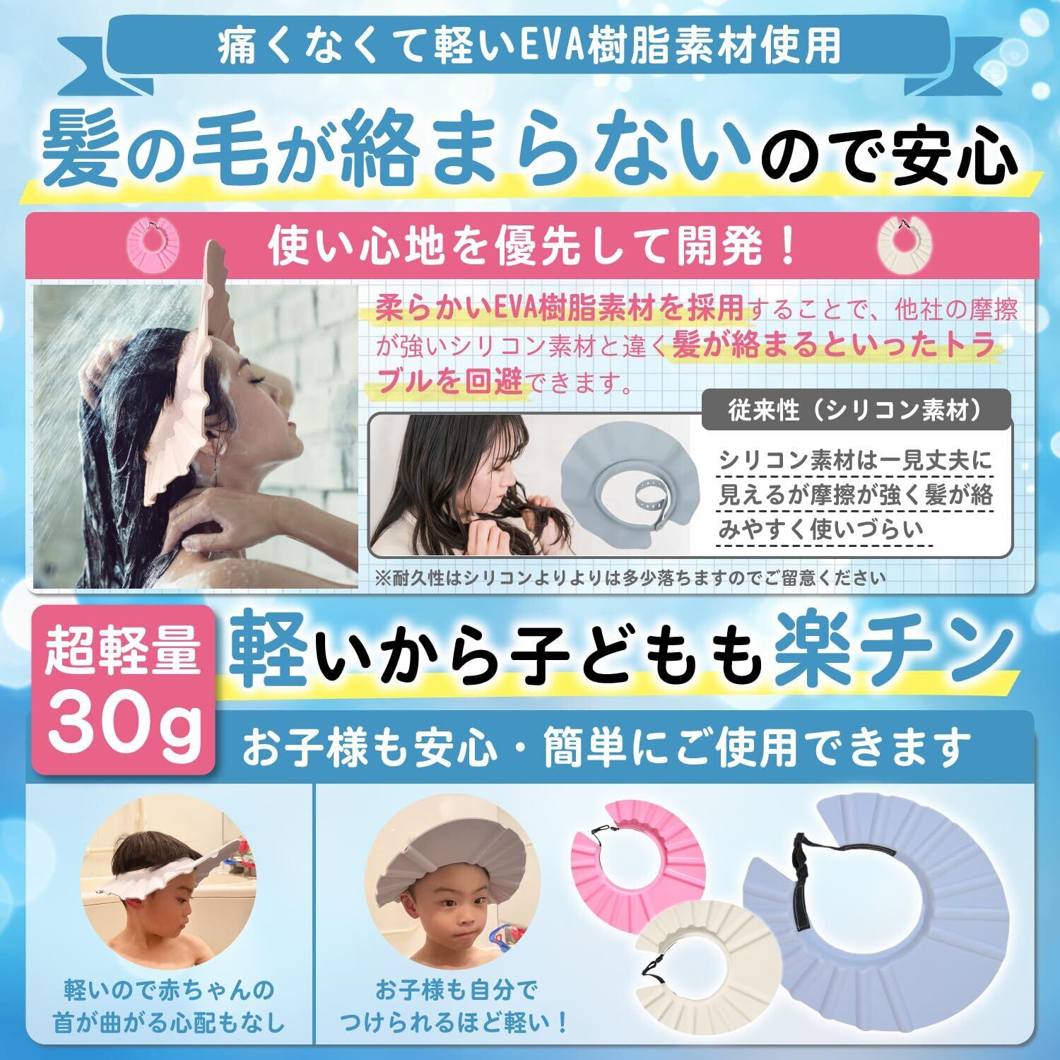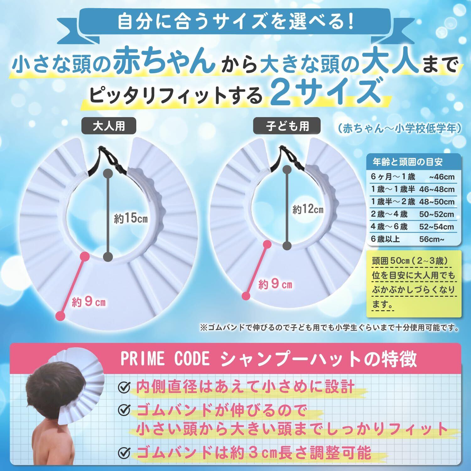 【大人用 子供用の2サイズ】頭へのフィット感を高めるため大人用と子供用の2サイズをシャンプーハットをご用意。小さい頭~大きい頭までどんな頭にもフィットしやすくなってます。