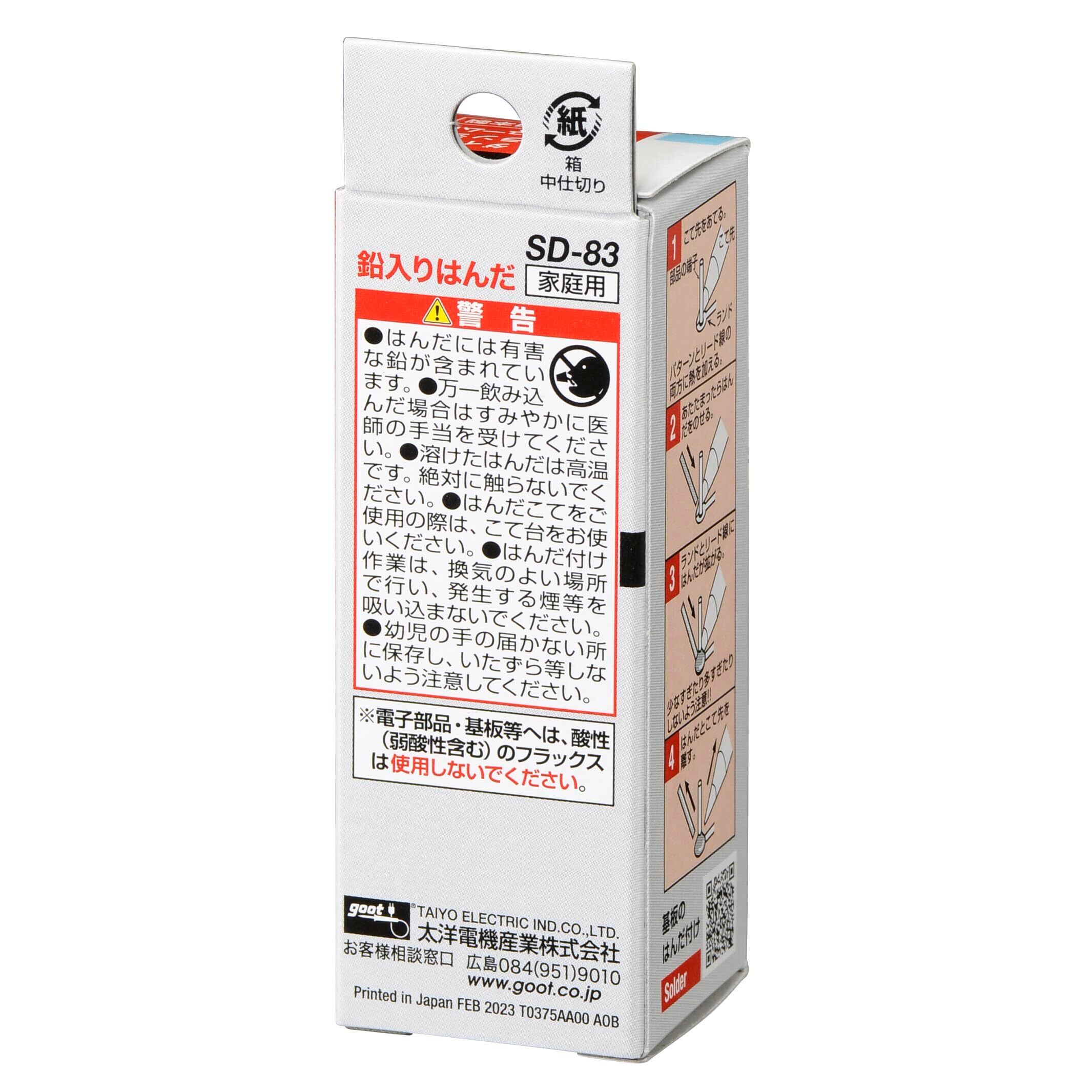太洋電機産業(goot) 電子工作用 鉛入りはんだ φ1.0mm 約3.0m スズ60%/鉛40% ヤニ入り SD-83 日本製