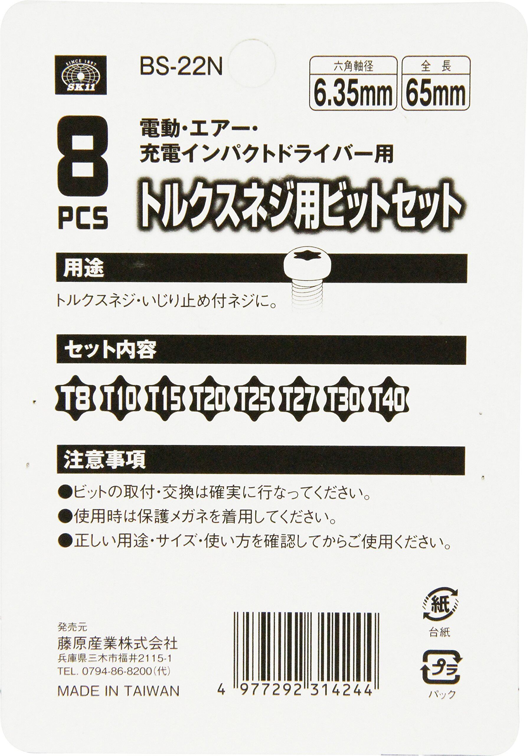 SK11(エスケー11) トルクスネジ用ビット 8点セット 65mm BS-22N 六角軸 6.35mm