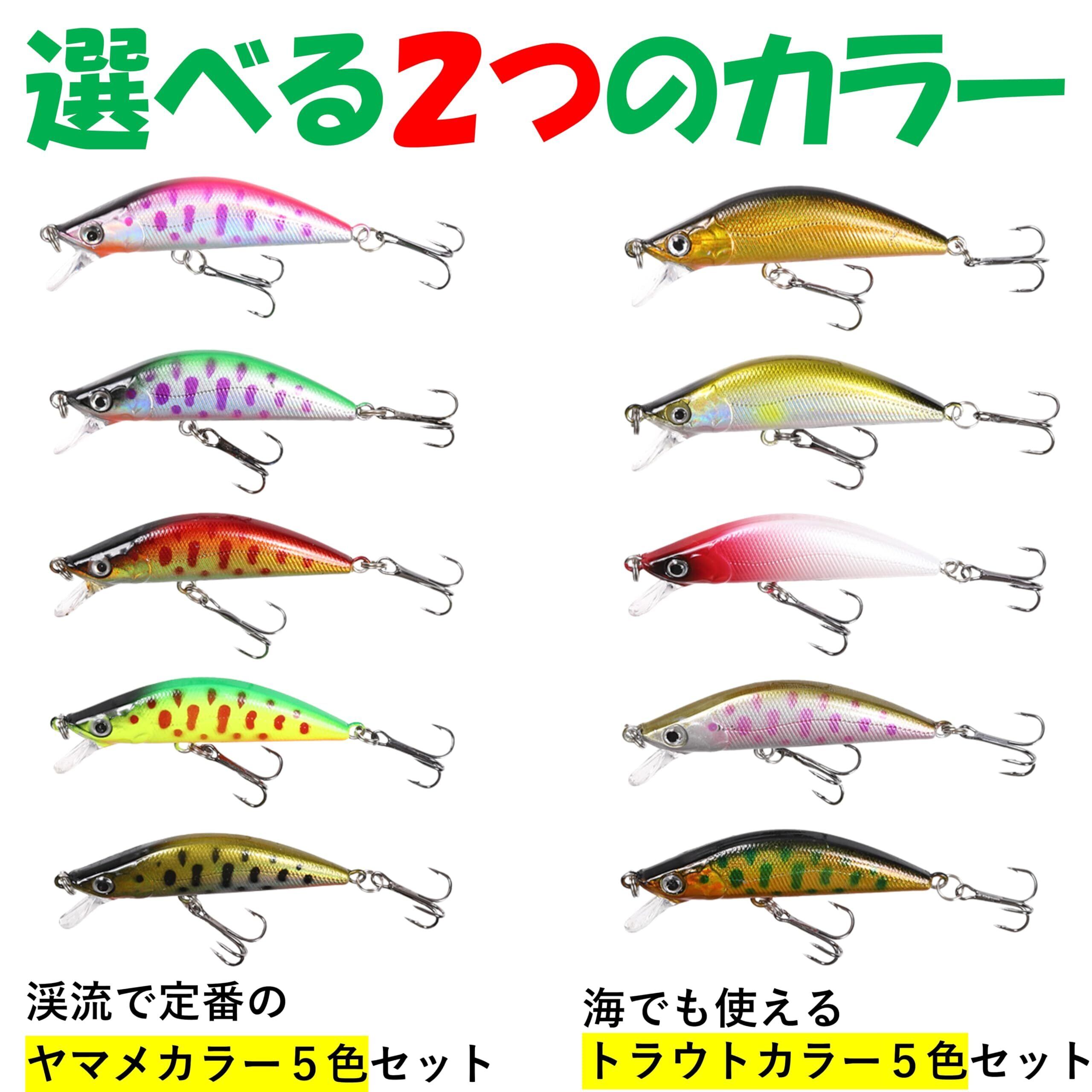 カラー:渓流で定番のヤマメカラー5色セット(ナチュラルヤマメ、ピンクヤマメ、グリーンヤマメ、アカキンヤマメ、グリーンイエローヤマメ)