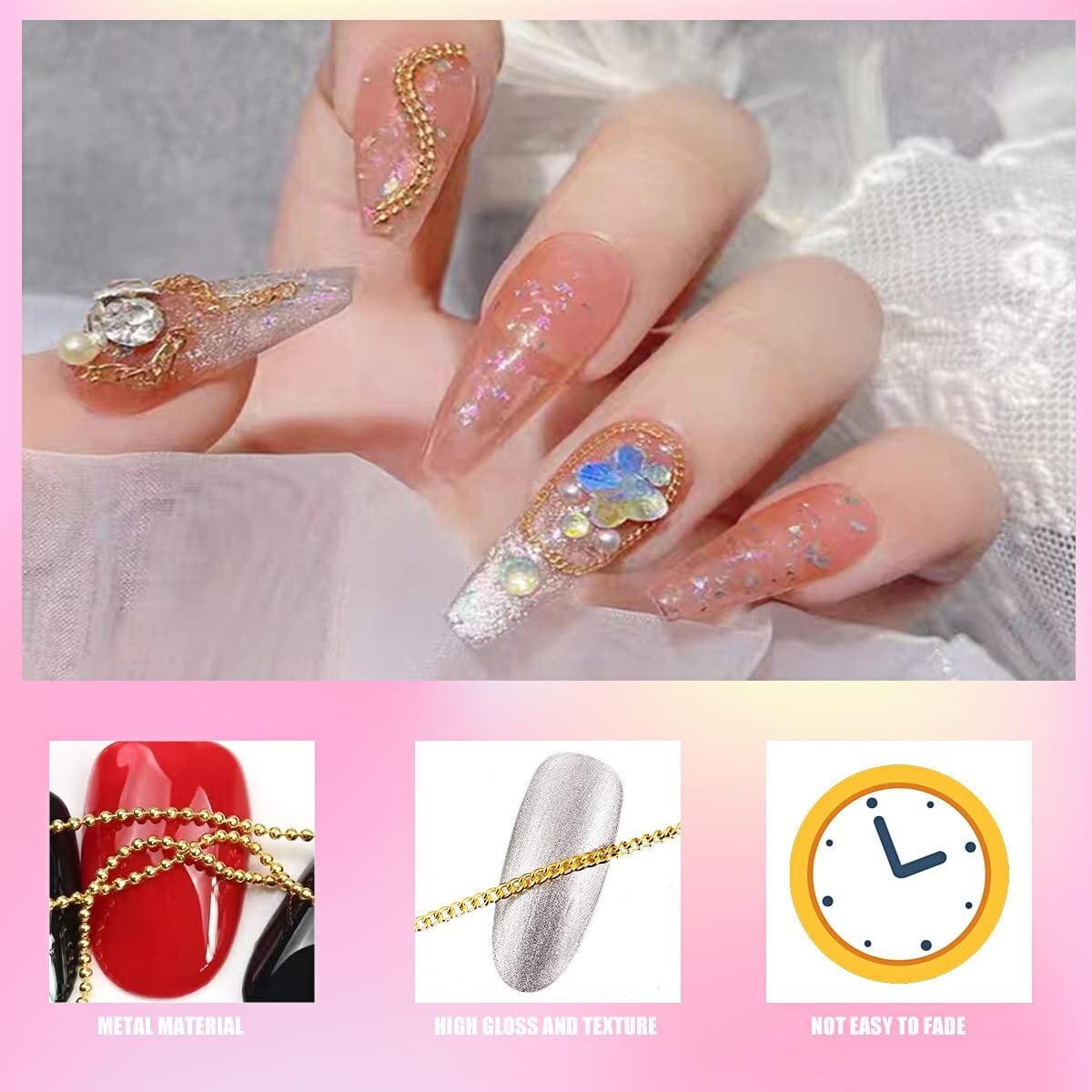 【ネイルチェーン】おしゃれなネイルチェーンパーツが登場!異なるスタイルがあり、ゴールドとシルバーの色は華やかで綺麗です。目を引くようなおしゃれなネイルができます。