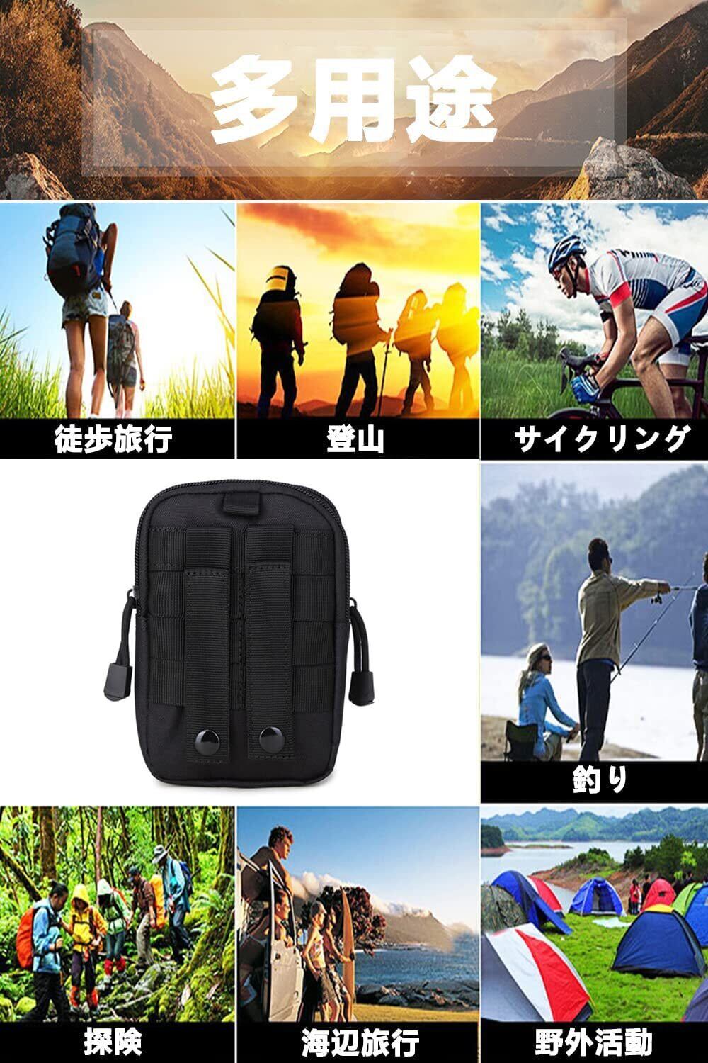 多機能ポーチ ベルトポーチ ウエストポーチ 小物入れ バッグ 携帯便利 大容量 登山 探検 キャンプ アウトドア用 ミリタリーポーチ(ブラック)