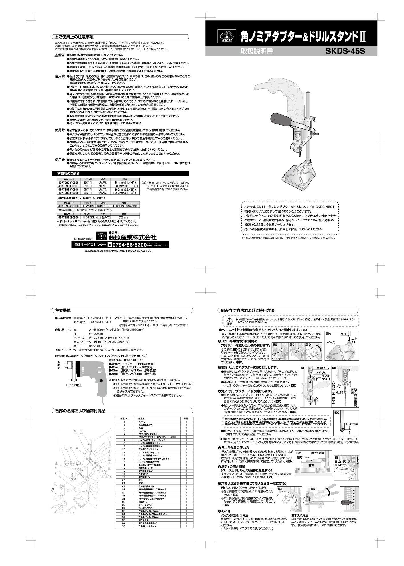 SK11(エスケー11) 角のみアダプター&ドリルスタンドII ドリル首径38,42,43,45mm専用 SKDS-45S