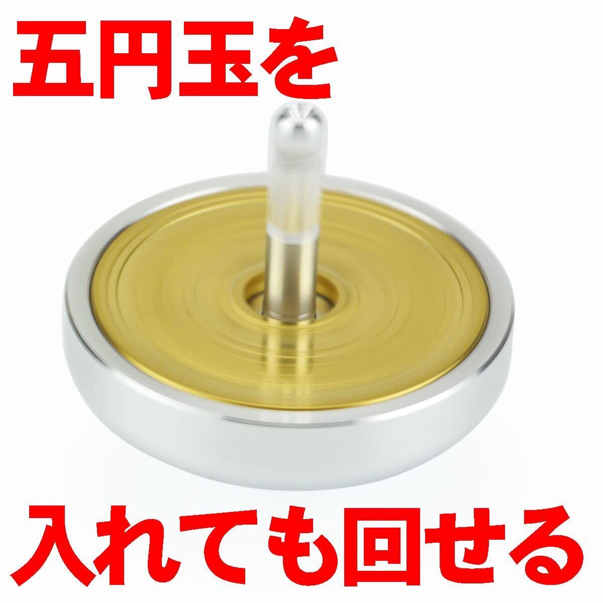 ※5円玉は付属していません。 スピンギアの企画で、東京葛飾区の町工場、ミツミ製作所の製造の精密な削り出し独楽。