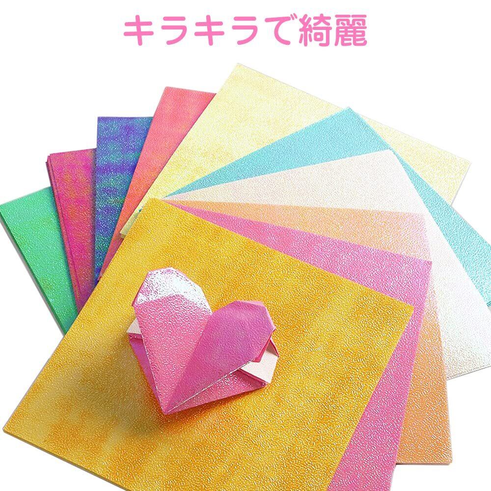 折り紙 キラキラ 50枚 10色 25cm角 おりがみ 折り紙セット 片面おりがみ カラフル ペーパーアート キラキラ紙 千羽鶴 装飾 DIY クラフト (25×25cm)