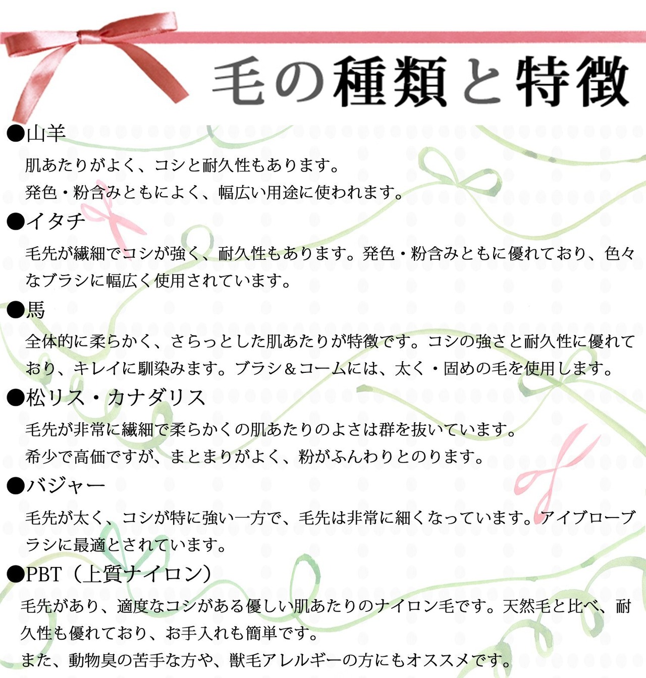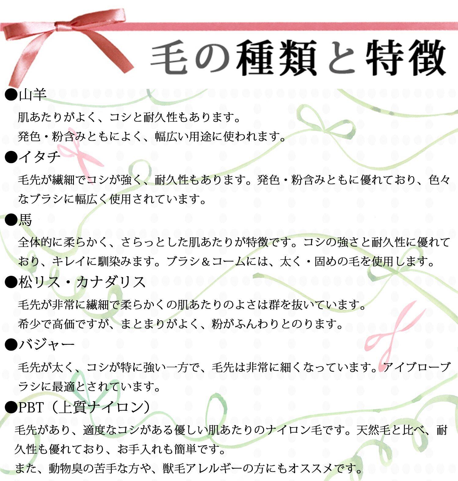 材質:(本体)AS樹脂、(毛)ナイロン毛、(口金)アルミニウム