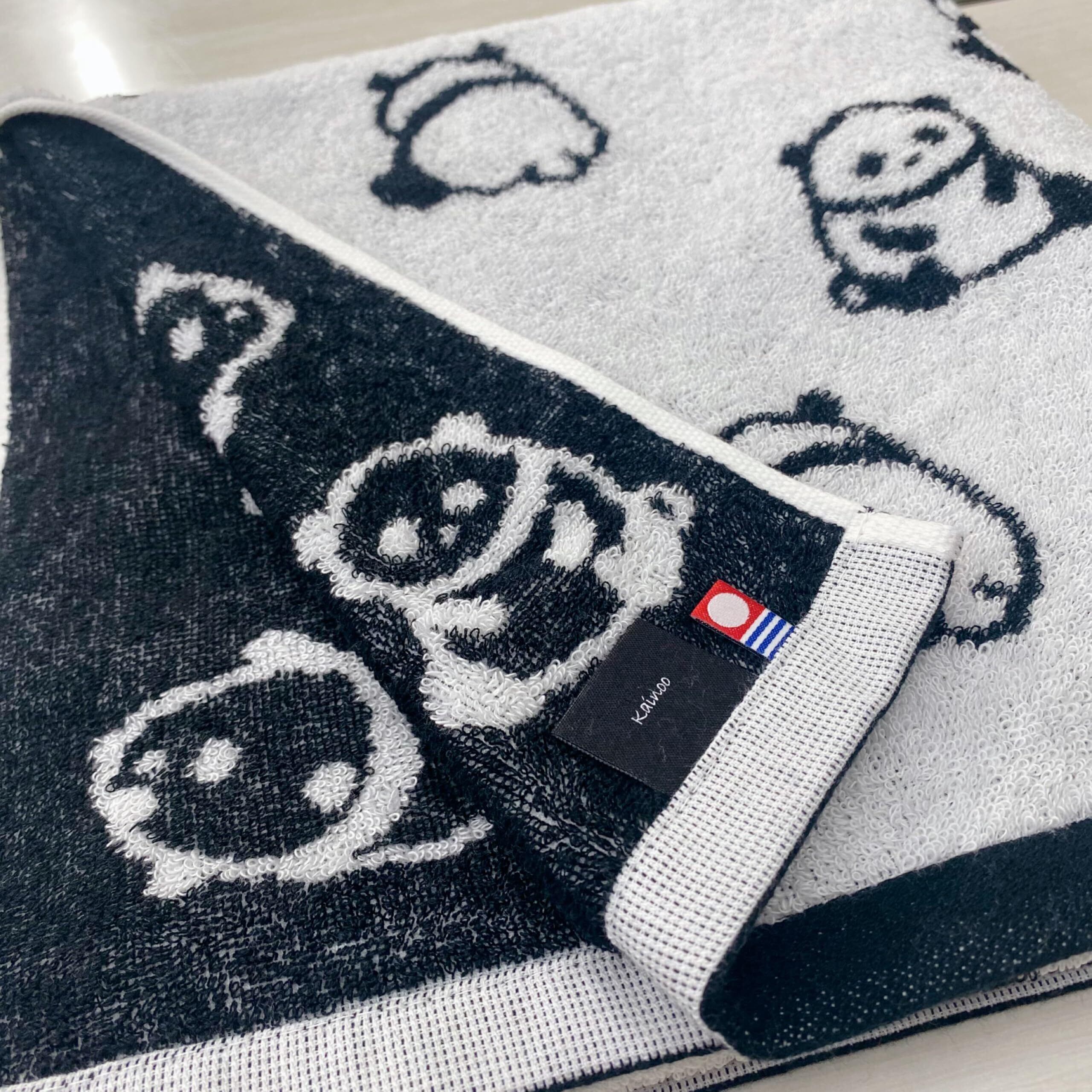 【Kainoo ぱんだ】■可愛らしいぱんだ柄のバスタオルです。何とも言えない表情やたたずまいが癒しを与えてくれます。■今治の自社工場で製作した吸水・肌触りともに良いタオルです。■自社工場で製作したからこそ実現した価格です。