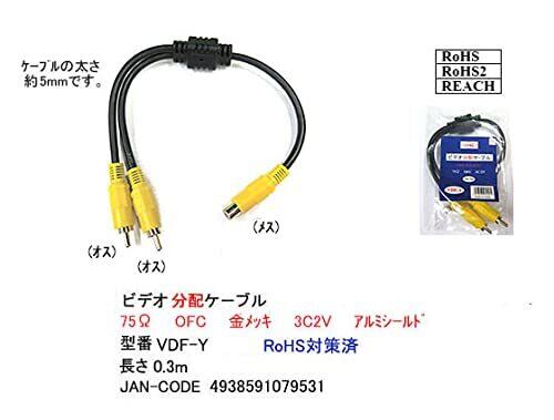 【カモン(COMON)製】RCAビデオ2分配ケーブル(メス⇔オスx2)/0.3m【VDF-Y】