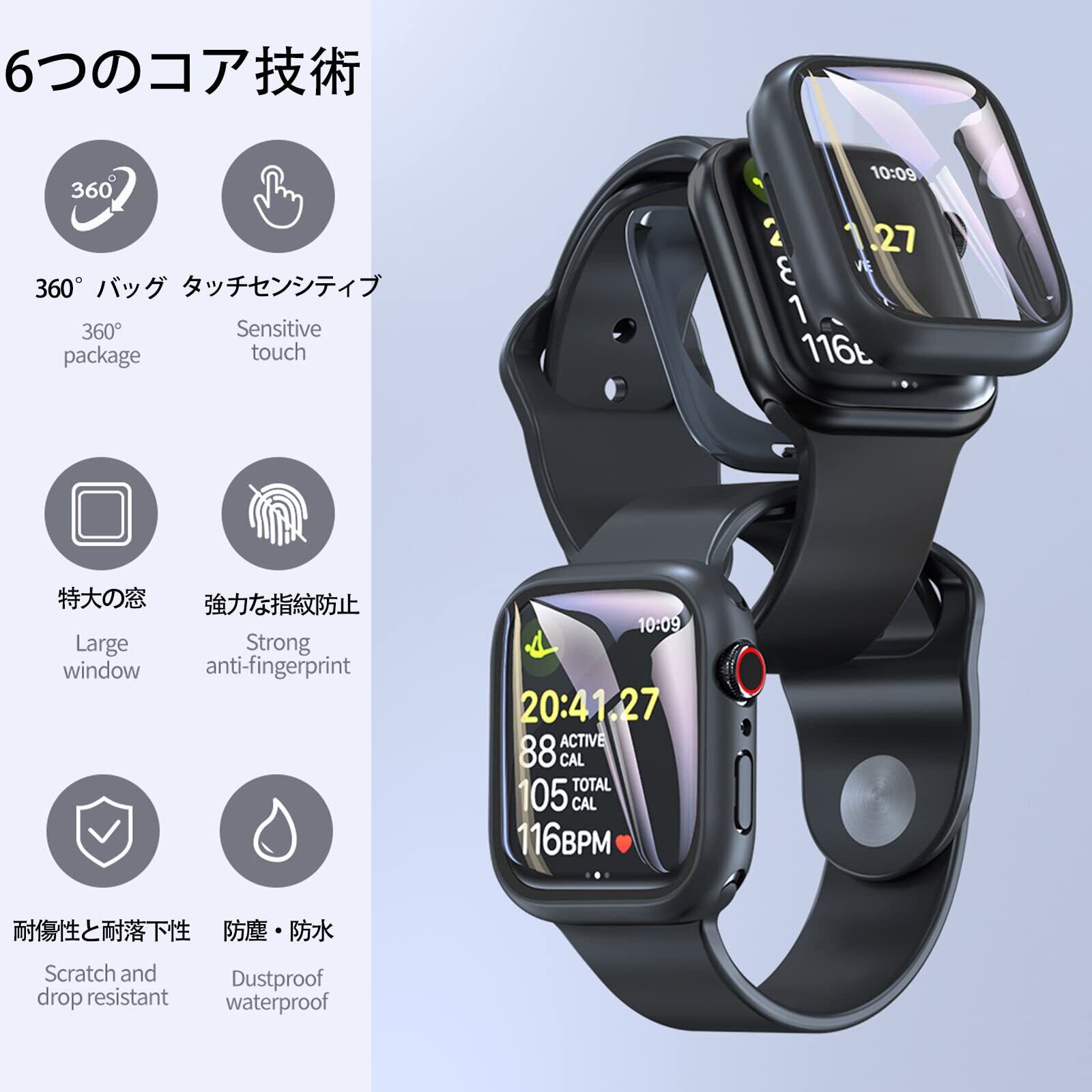 2重構造、ダブル保護:今までの保護ケースを基に改良し、防水機能が向上しました。耐久性と柔軟性に優れたPC素材+硬度9Hの強化ガラス、背面のハードフレームと組み合わせて、360フルボディ保護、偶発的な落下から時計を保護します。