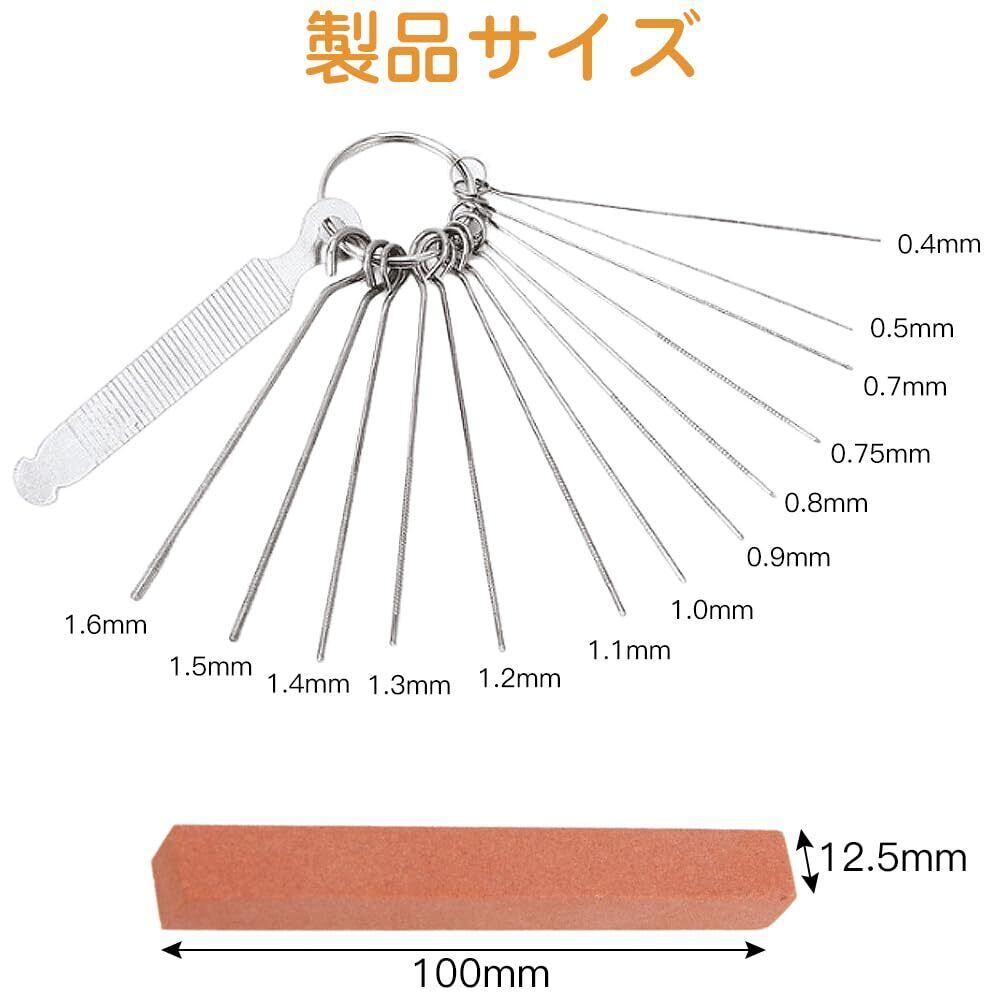 サイズ:ギター研磨用ヤスリ 0.4 mm / 0.5 mm / 0.7 mm / 0.75 mm / 0.8 mm / 0.9 mm / 1.0 mm / 1.1mm / 1.2 mm / 1.3mm / 1.4 mm / 1.5 mm / 1.6 mm、研磨長 25 mmの各種サイズがあります。