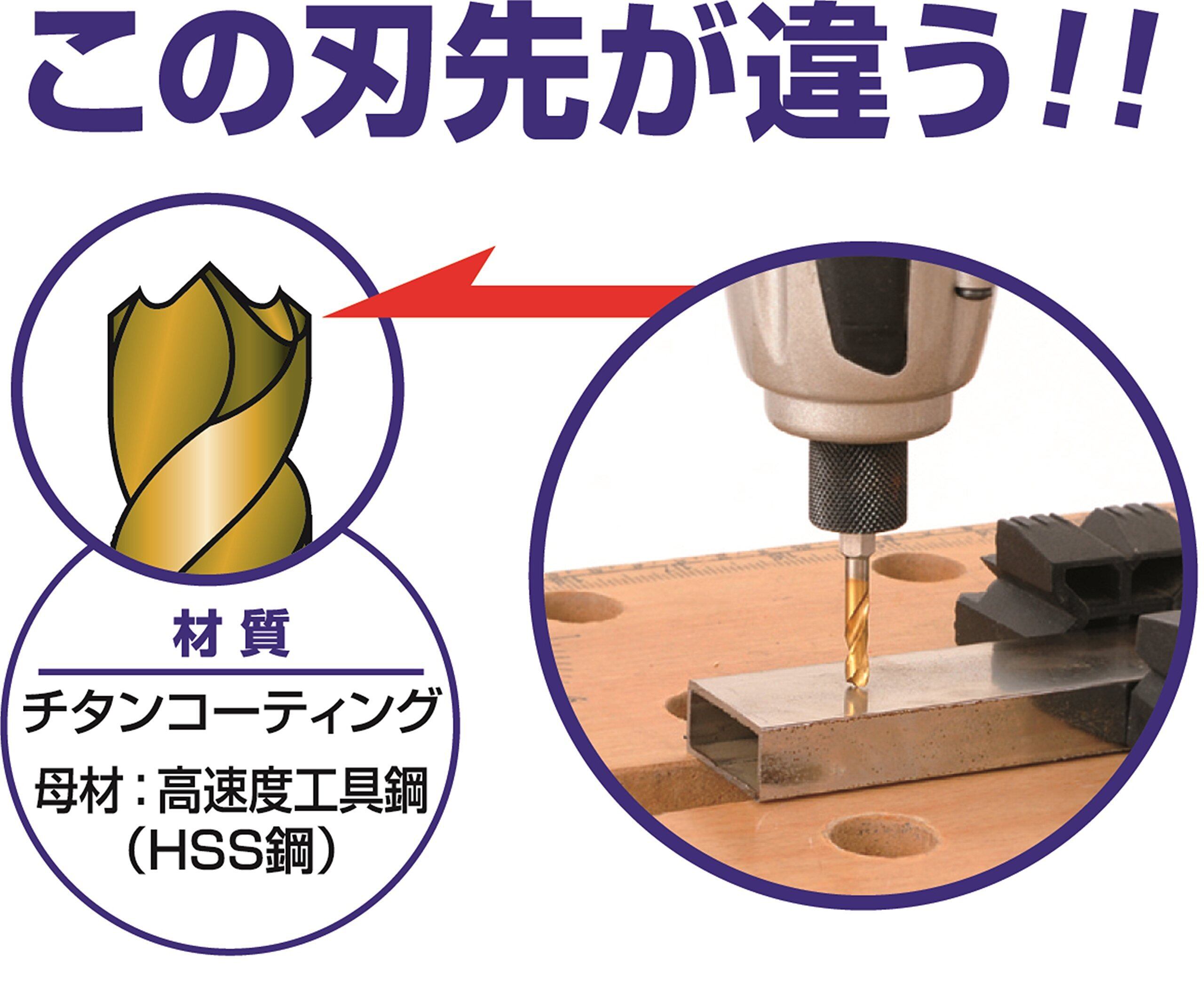用途:鉄、ステンレス、銅、アルミ、木材、樹脂(アクリル等薄くて割れやすいものは不可)の穴あけ