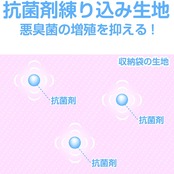 抗菌剤練り込み生地を使用:抗菌剤を練り込んだ生地で菌をガード。防臭効果もあります。