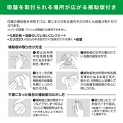 ・吸盤より大きいタイル、模様のないステンレス、プラスチック面、透明ガラス、鏡面(くもり止め加工などの表面加工鏡は除く)、冷蔵庫・洗濯機などの金属塗装面