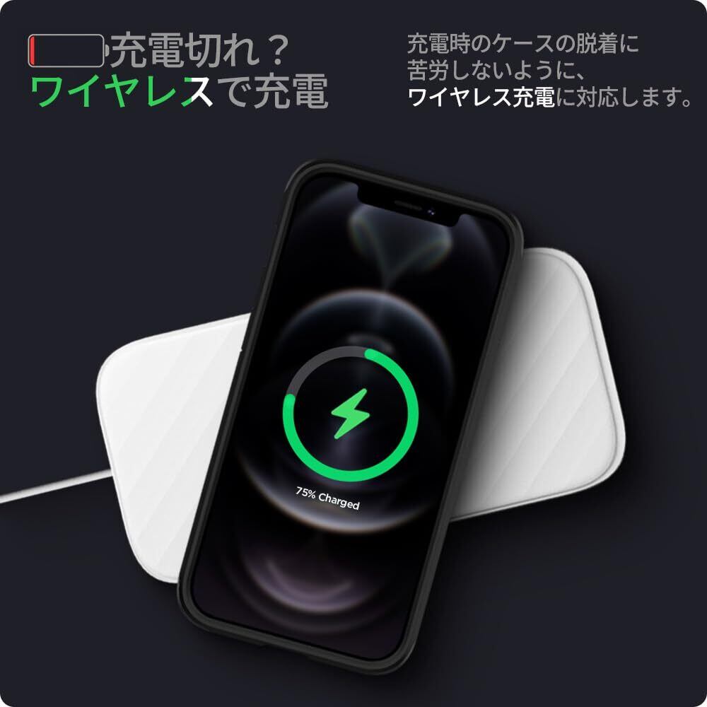 【MagSafe / ワイヤレス 充電 対応】程よい厚さで設計してケースを装着したまま「ワイヤレス充電」が行えます。MagSafe高速充電は可能ですが、MagSafe専用マグネットが搭載されていないため付着は対応していません。