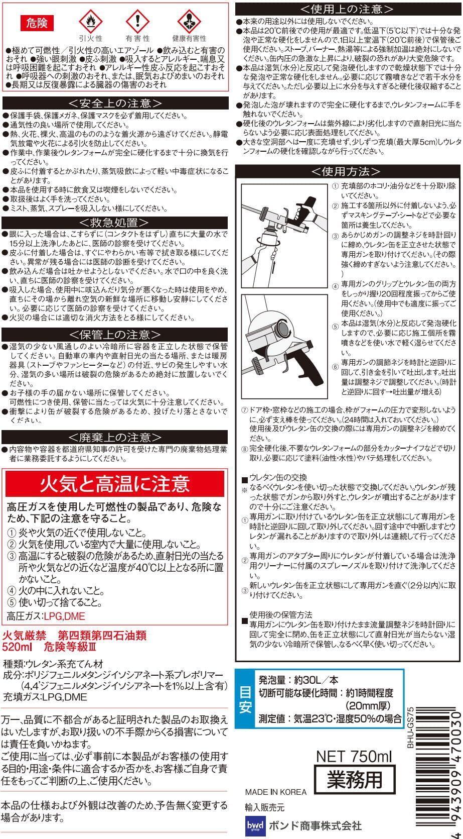 ※本製品ご使用には発泡ウレタン用のガン(コード 8809342961015)が必要(別売り)です。