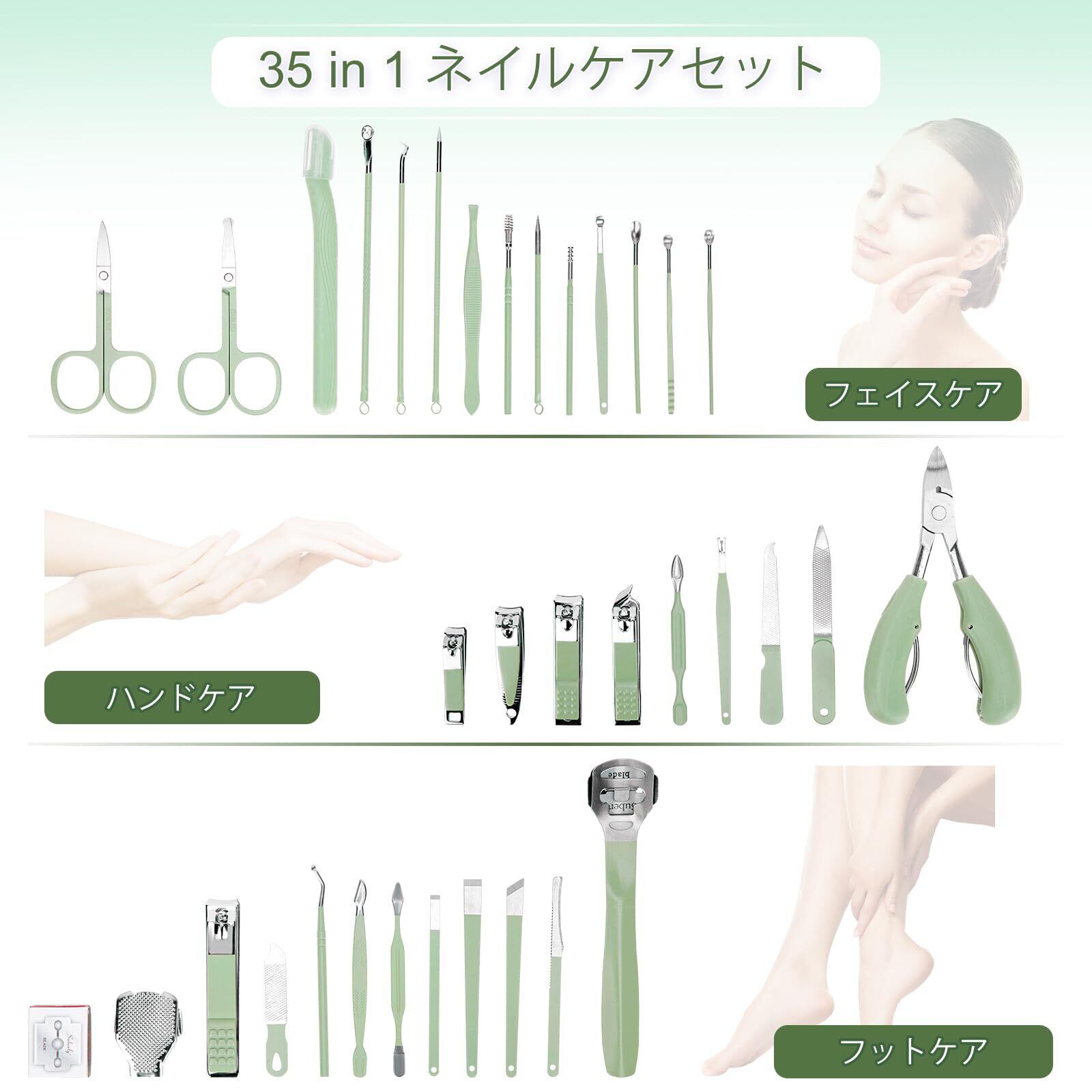 35種類の多機能ネイルツールセット:ネイルケア、フットケア、美容ケアに必要なすべてのツールを1つに凝縮。さまざまな用途に対応するマルチツールで、時間とお金を節約できます。