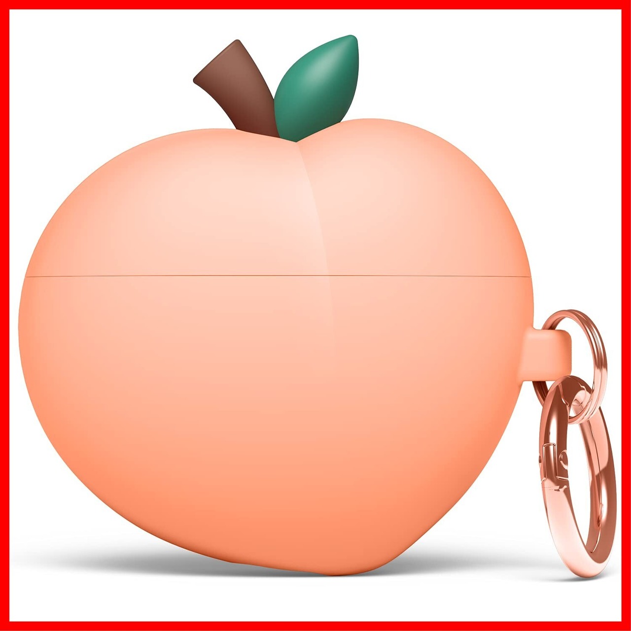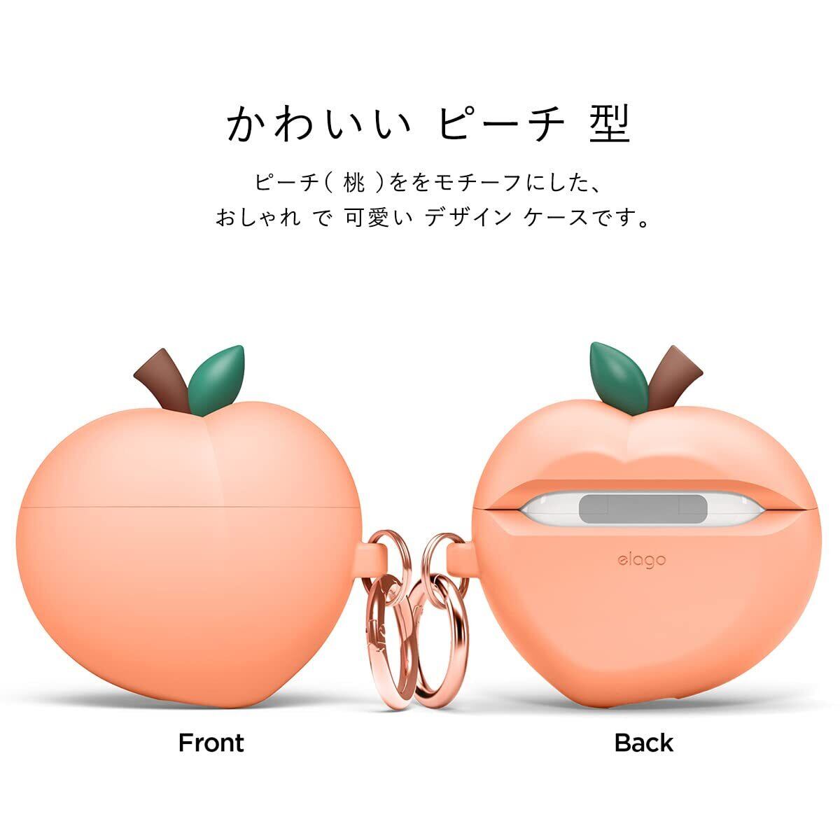 【elago】 AirPods 3 対応 ケース おしゃれ かわいい フルーツ デザイン カバー カラビナ 付き 耐衝撃 シリコン ケースカバー 衝撃 吸収 保護 アクセサリー シリコンケース [ Apple AirPods3 エアポッツ エアーポッズ 3世代 アップル エアポッツ3 第3世代 対応 ] PEACH HANG ピーチ