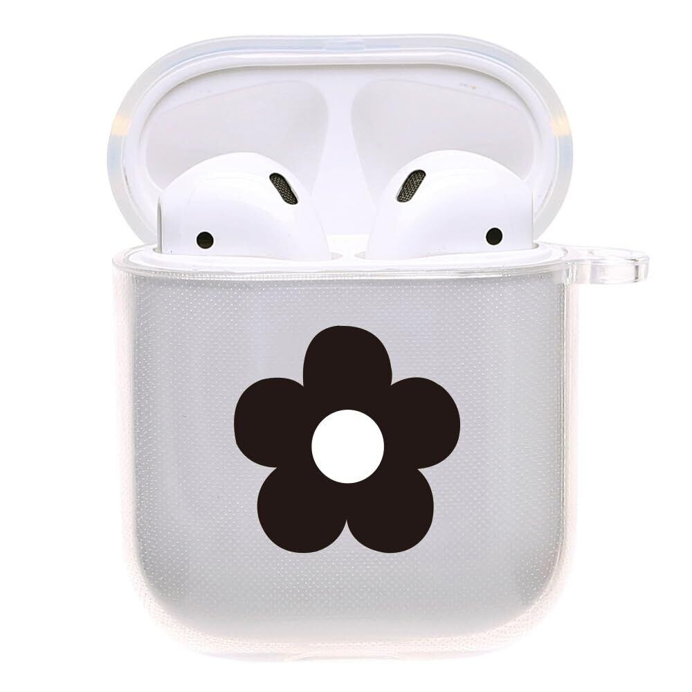 ONLYOU Airpods 用 ケース 第2世代 韓国 第1世代 TPU フラワー 花 デザイン クリア 透明 エアーポッズ カバー レディース お揃い イヤホンケース カラビナ フック チャーム (AirPods(第1/2世代) ブラック) | hananoki