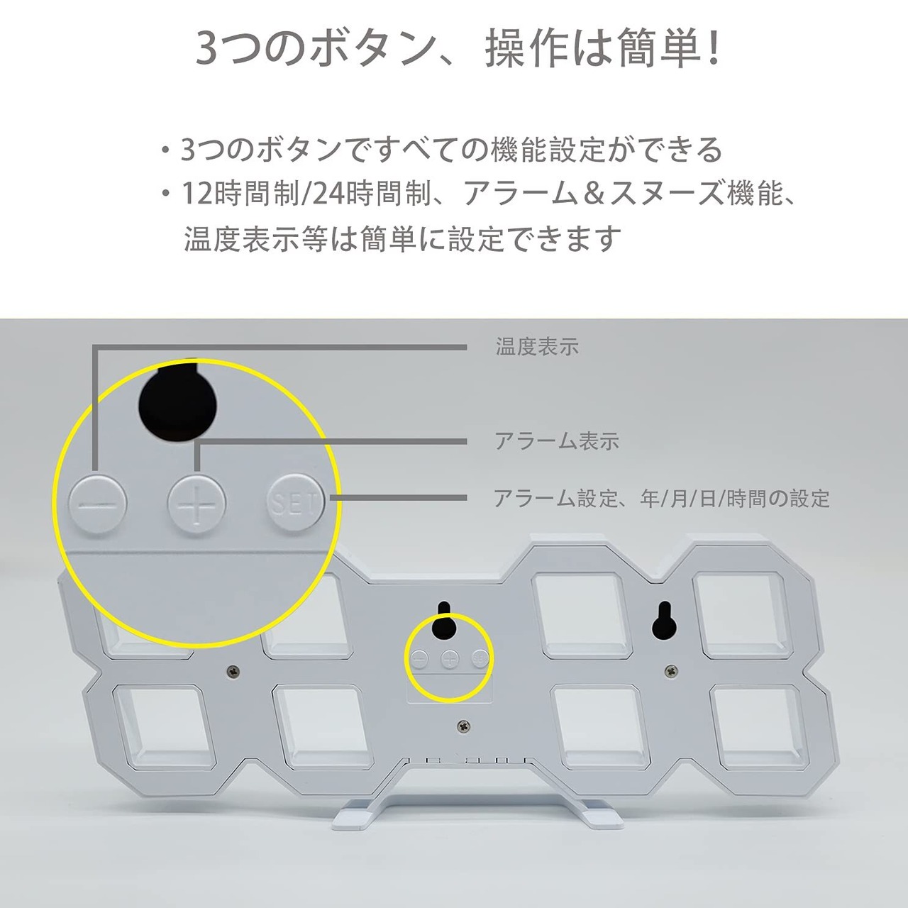 KOSUMOSU デジタル時計 LED 壁掛け 置き時計 明るさ自動感応 3D LED CLOCK 目覚まし時計 10インチリモコン付きナイトランプ年/月/日温度表示白色のキッチン時計(ACアダプター付属無し)ACD-210W | hananoki
