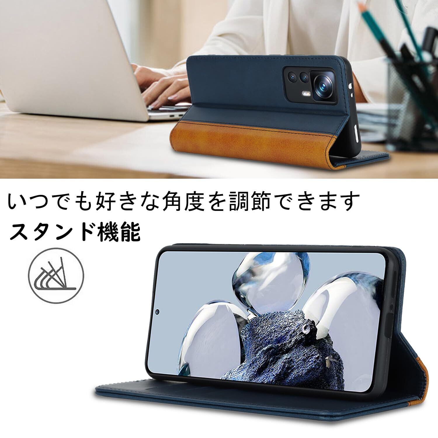 Havaya Xiaomi 12T Pro ケース Xiaomi 12T ケース 手帳型 docomo シャオミ 12t pro スマホケース シャオミ12t 耐衝撃 au mi12Tプロ カバー マグネット式 カード収納 SoftBank スタンド機能 レザー-ブルー+イエロー | hananoki