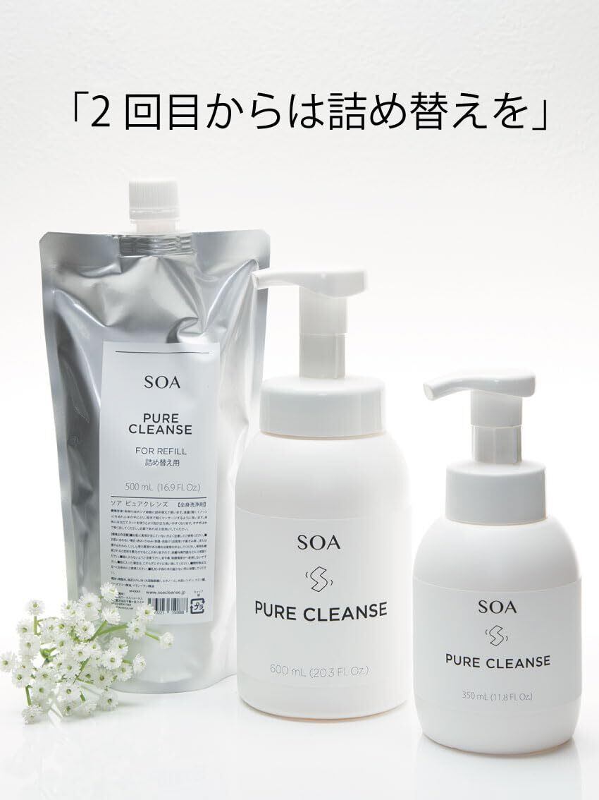 ソア(SOA) ピュアクレンズ 泡 ポンプ ボディーソープ 無添加 保湿 敏感肌用 天然由来成分 イランイラン ローズマリー 天然香料 (本体 600ml)