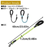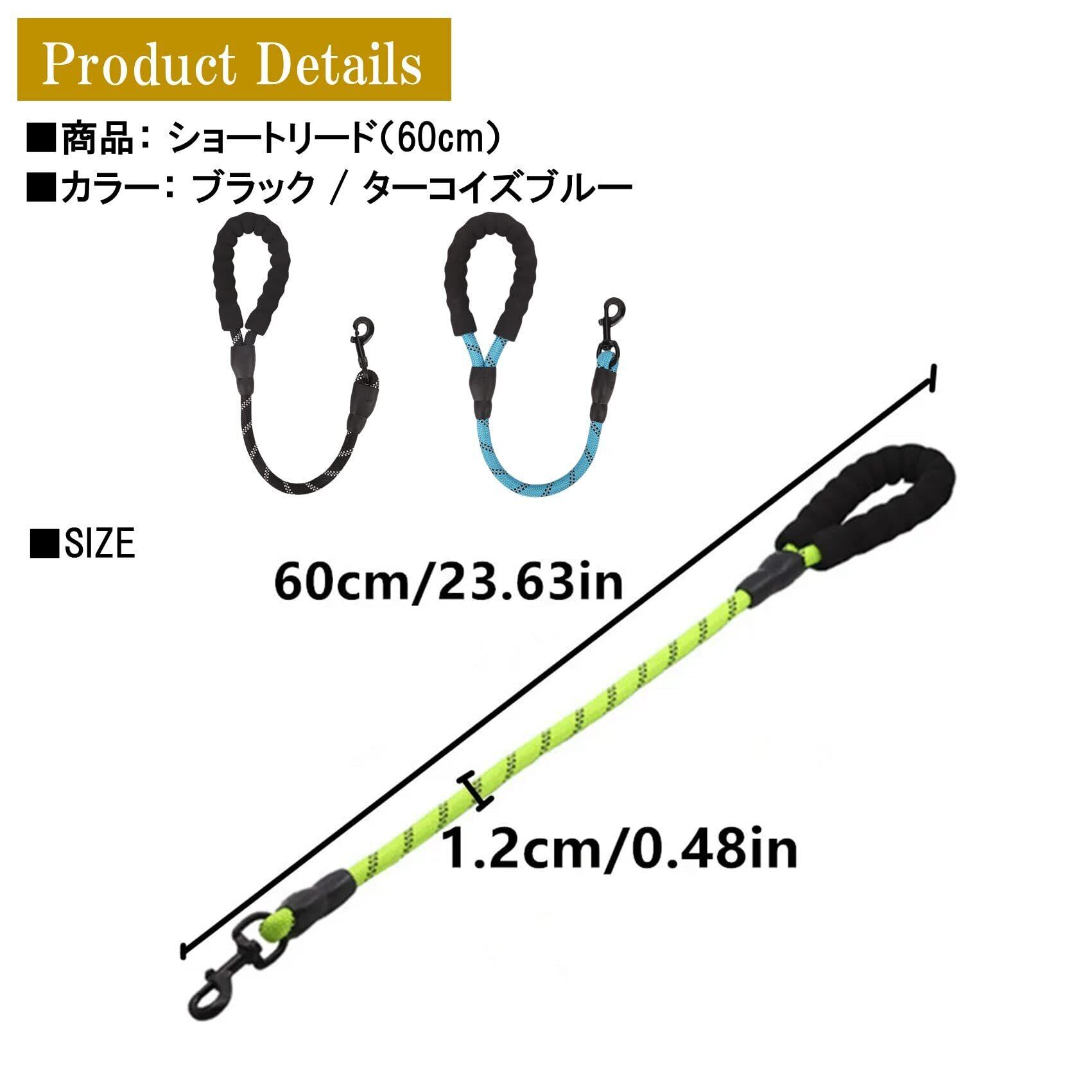 商品詳細: ショートリード(60cm) 【サイズ】 長さ60cm・直径1.2cm 【カラー】 ブラック・ターコイズブルー 【材質】 ナイロン・スポンジ・亜鉛合金・ABS
