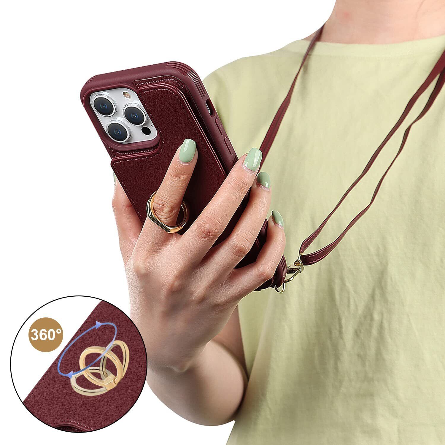 Cavor iPhone 16 手帳型ケースiPhone16 スマホケースショルダー クロスボディ肩掛け 首かけ 斜めがけ ショルダー ケース 背面ポケット付きiPhone 16 財布型ケース【上下開】iPhone16 携帯ケース【RFID機能】iPhone 16 case カード収納 360°回転リング 可愛 横置磁気機能 Qi急速充電対応-ピンク