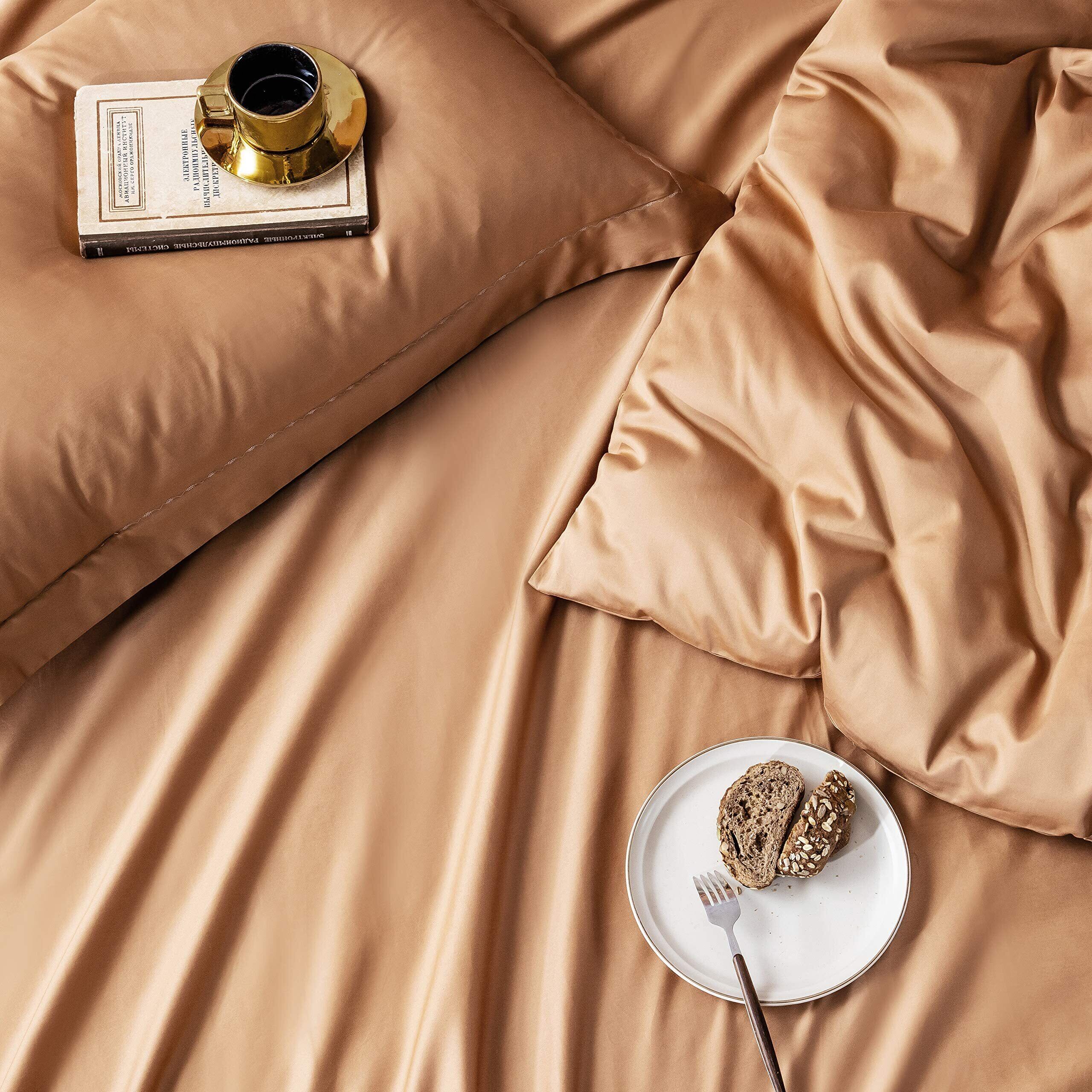MILDLY 布団かばーセミダブル 4点セット エジプト超長綿100% 布団カバーセット セミダブル:掛け布団カバー ボックスシーツ 枕カバー*2 / 300TCサテン調:肌ざわりが良い 通気性に富んで 毎日の快眠で元気に過ごしたい方に(SD・シャンパンゴールド) | hananoki