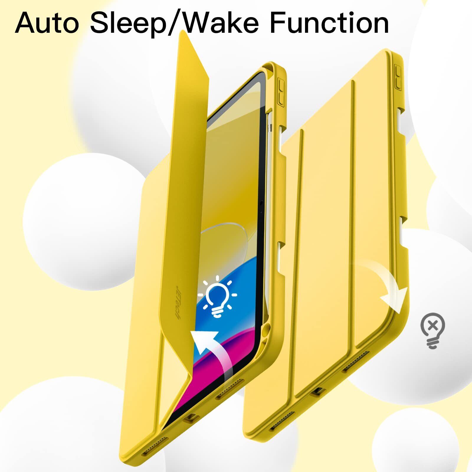 JETech iPad(A16)ケース 第11/10世代(2025/2022モデル)用Pencilホルダー付き 対応 ソフトTPUバック スリム保護カバー オートウェイクアップ/スリープ機能付き (イエロー)